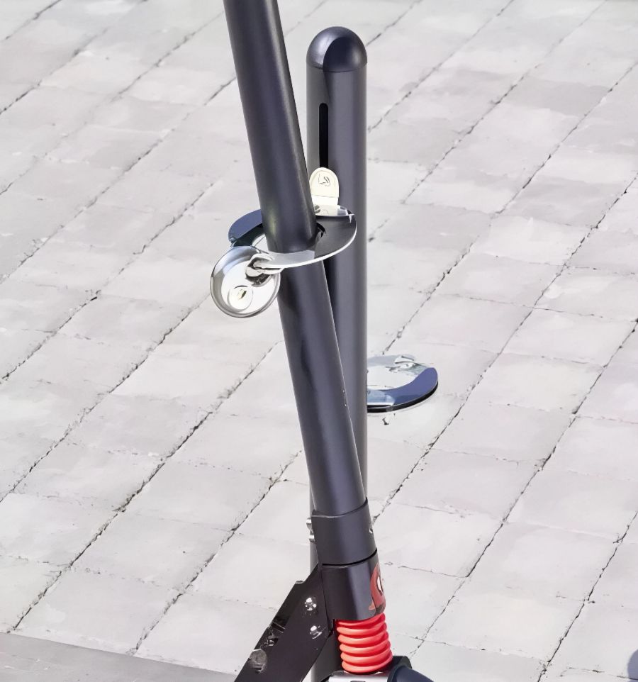 Ce poteau range 2 trottinettes possède un blocage du mât pour les trottinettes.