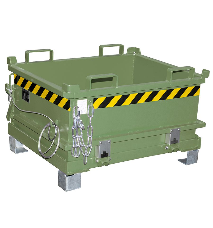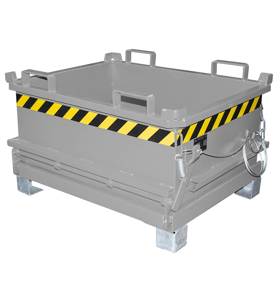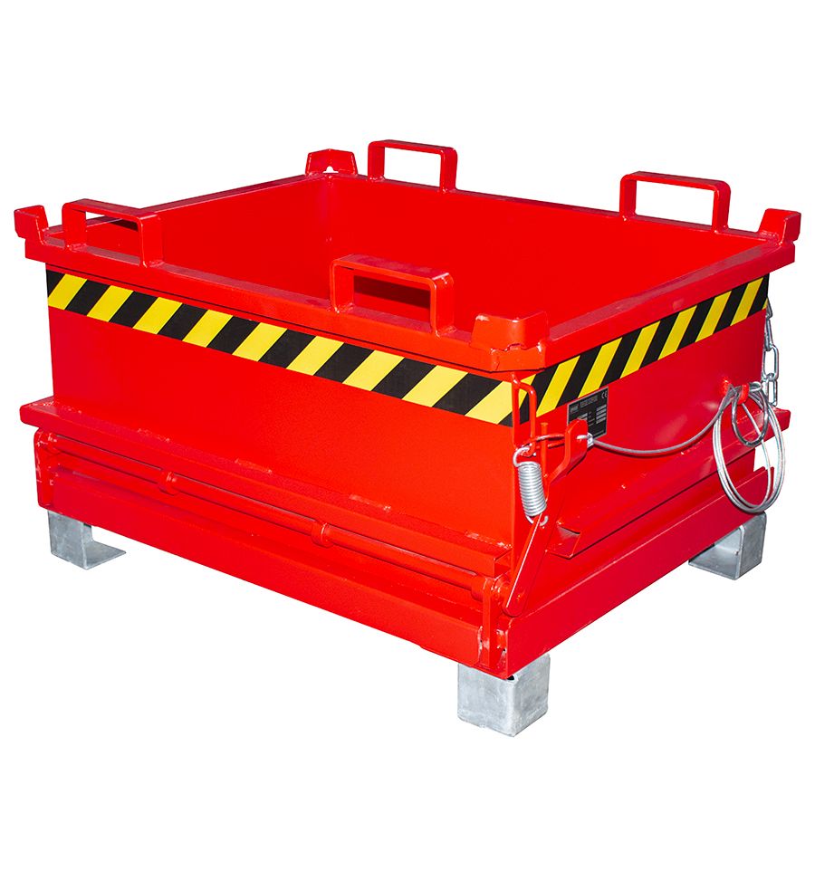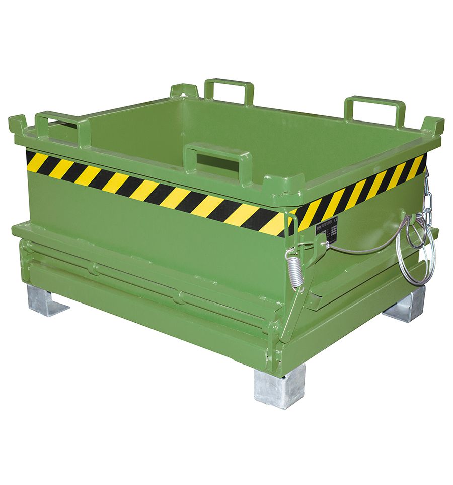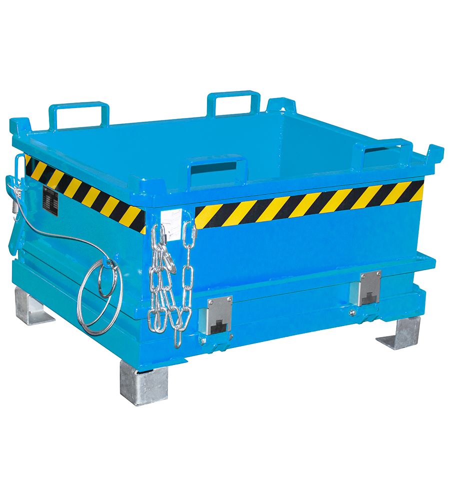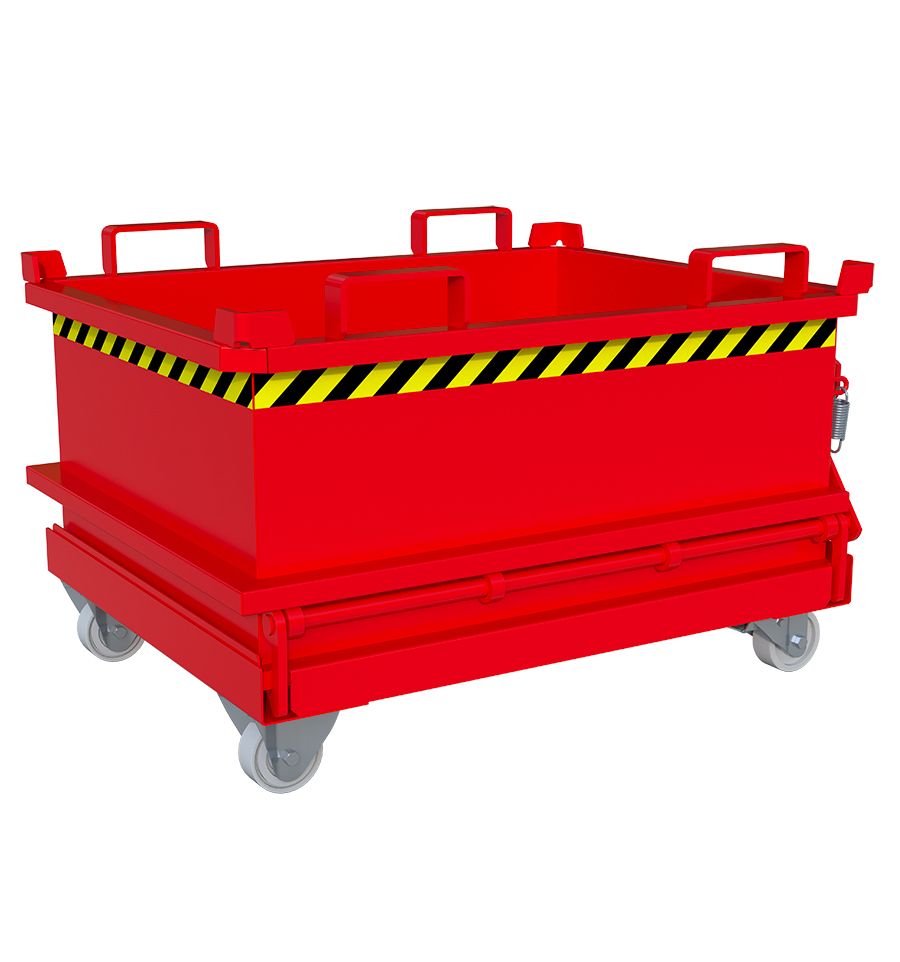 Benne à fond ouvrant très faible hauteur de 130 à 370 L en acier laqué. Disponibles en 5 couleurs standards. Existe avec ou sans roulettes.