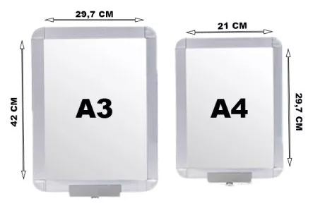Également, le porte-affiche est utilisé dans un but informatif. En effet, il comprend un cadre pour y placer deux affiches d’information de format A3 (29,7 x 42 cm) ou A4 (21 x 29,7 cm), côté recto et verso. De plus, vous pouvez orienter le cadre en format portrait ou paysage, en fonction de vos besoins !