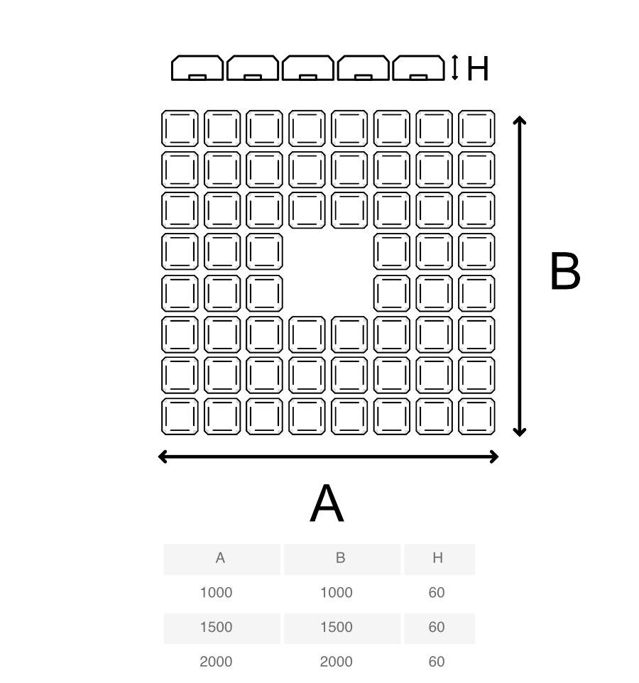 - Dimension : 1000 x 1000 x 60 mm, 1500 x 1500 x 60 mm, 2000 x 2000 x 60 mm