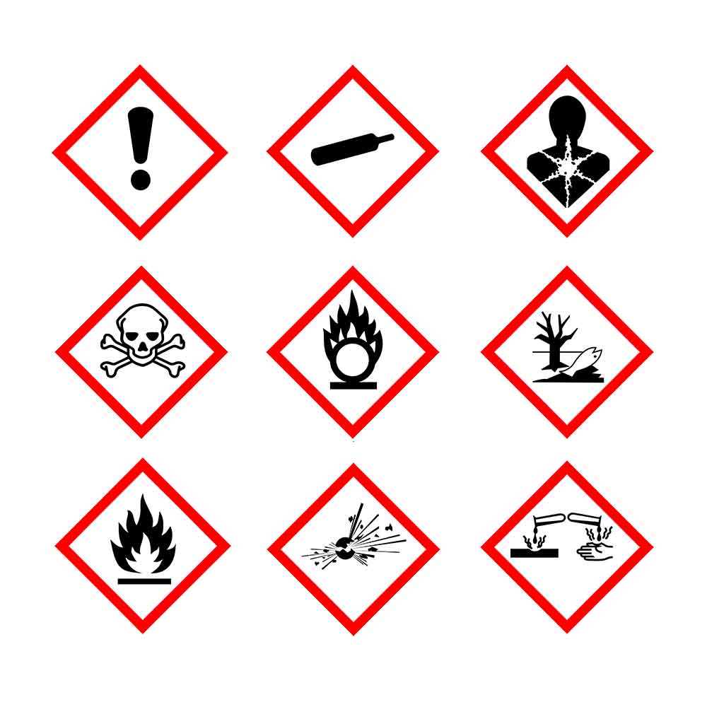 Nous vous conseillons d'utiliser des pictogrammes de danger harmonisés au niveau international et conformes au règlement CLP et donc au Système Général Harmonisé (SGH).