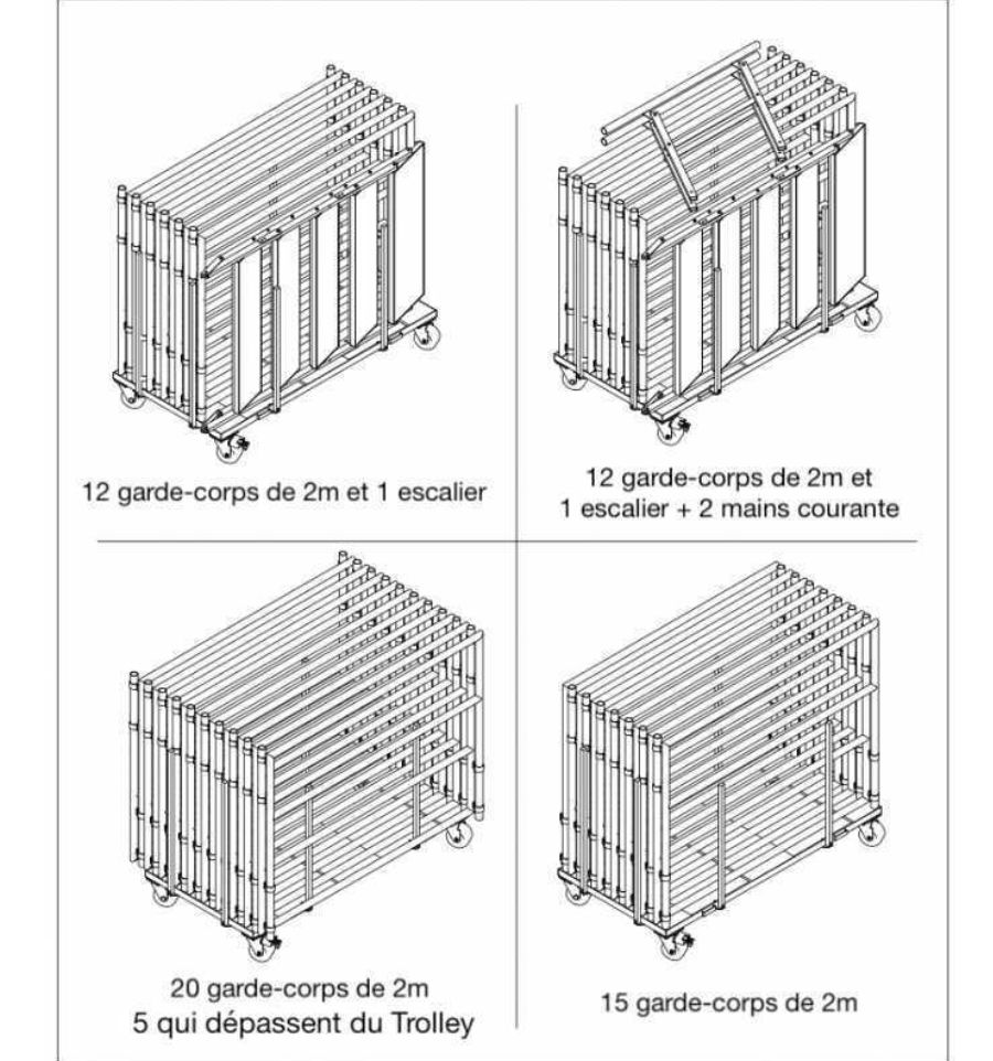 - Transport de 12 ou 15 garde-corps + escalier.