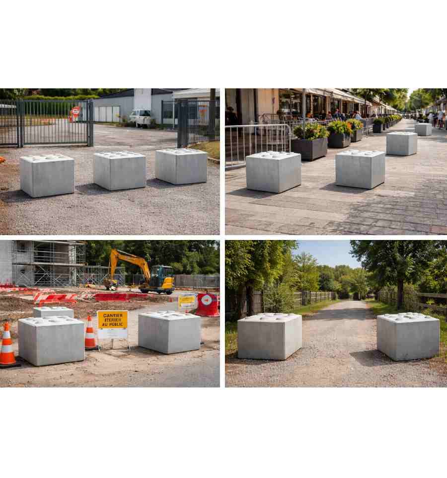 Le bloc empilable béton sert à construire des murs modulables, à empêcher l'accès à des routes ou à des lieux lors d'événements.