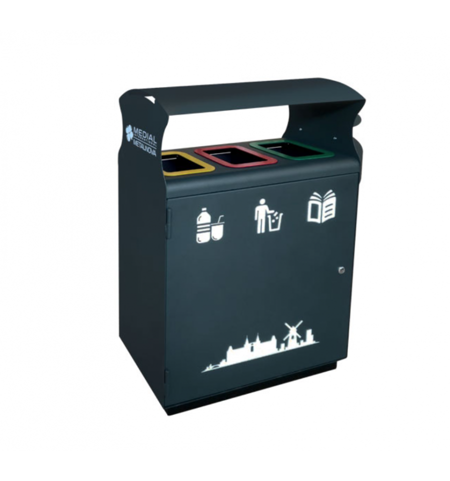 Notre corbeille de tri selectif extérieure avec auvent permet de faciliter l'accès au tri sélectif en milieu urbain.