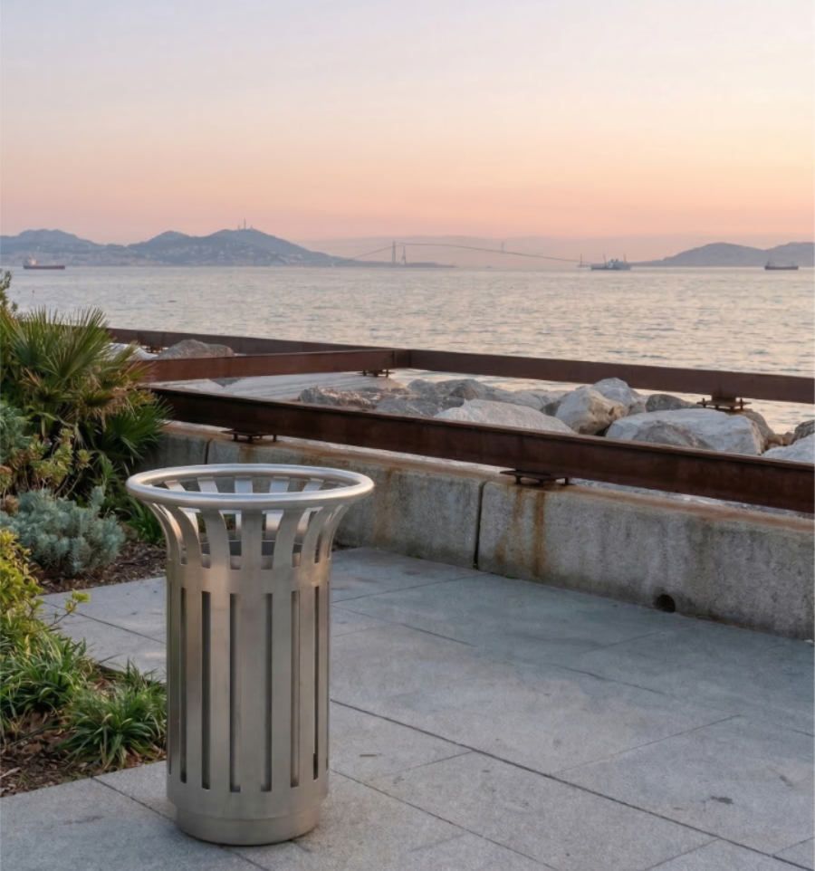 Notre corbeille Tulipe Extreme d’une contenance de 60 litres est fabriquée en acier inoxydable, offrant une excellente résistance à la corrosion et une grande robustesse pour une utilisation en extérieur. Elle est disponible en inox 304 brossé ou en inox 316 brossé de qualité marine, permettant de s’adapter à différents environnements, y compris les milieux les plus exigeants.