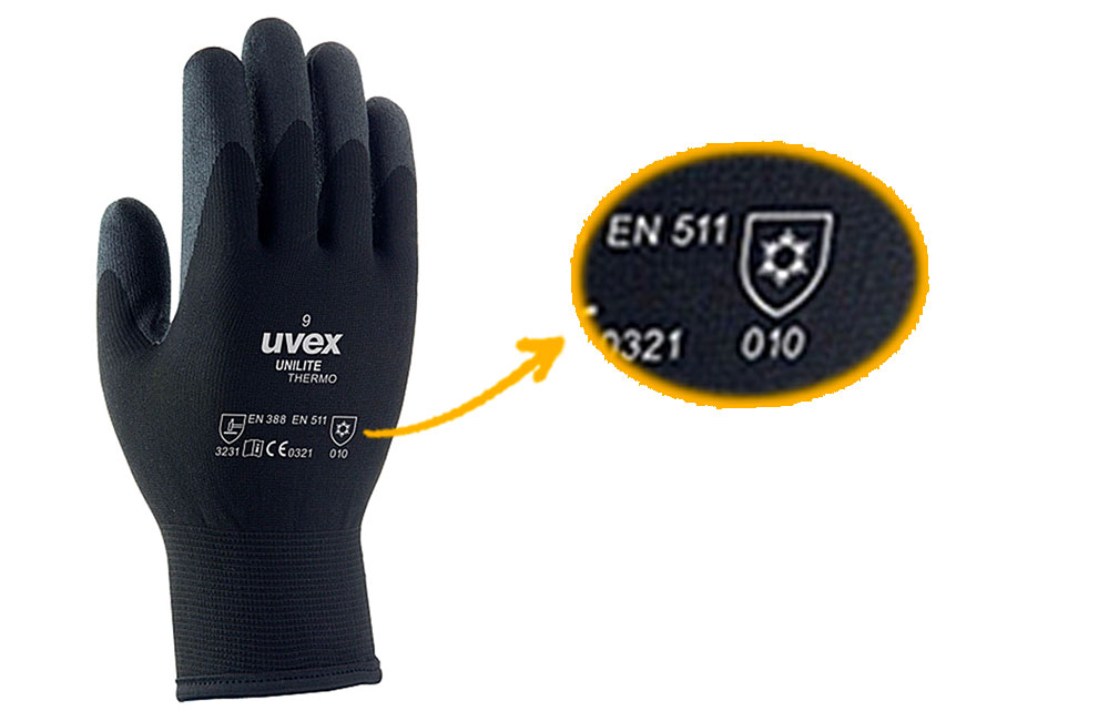 Le pictogramme qui représente la norme est un flocon de neige assorti d’une notation composée de trois chiffres. La norme EN 511 a été mise en place pour protéger les travailleurs du risque de froid sur les mains qui peuvent provoquer perte de dextérité, gelure et engelure.