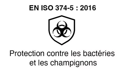| EN ISO 374-5 | Pour les gants offrant une protection contre les bactéries et les champignons. |