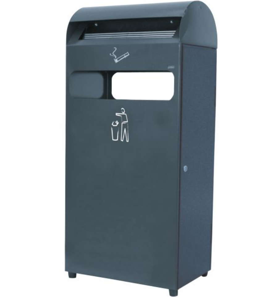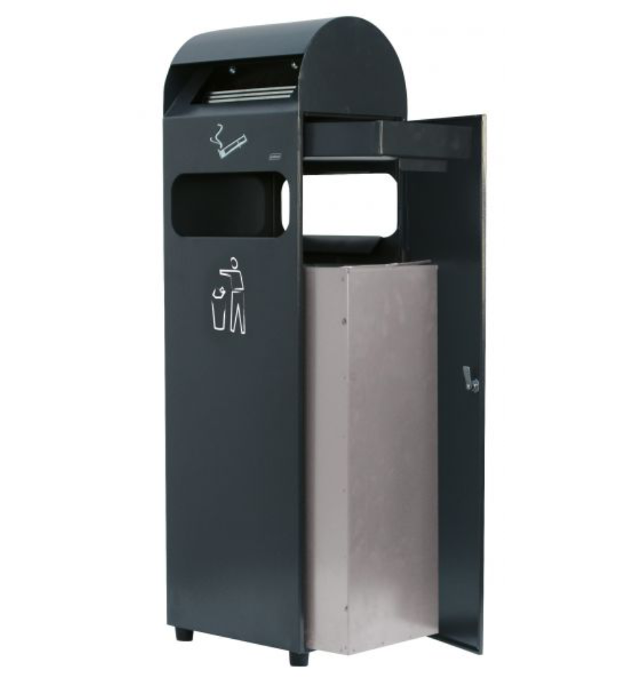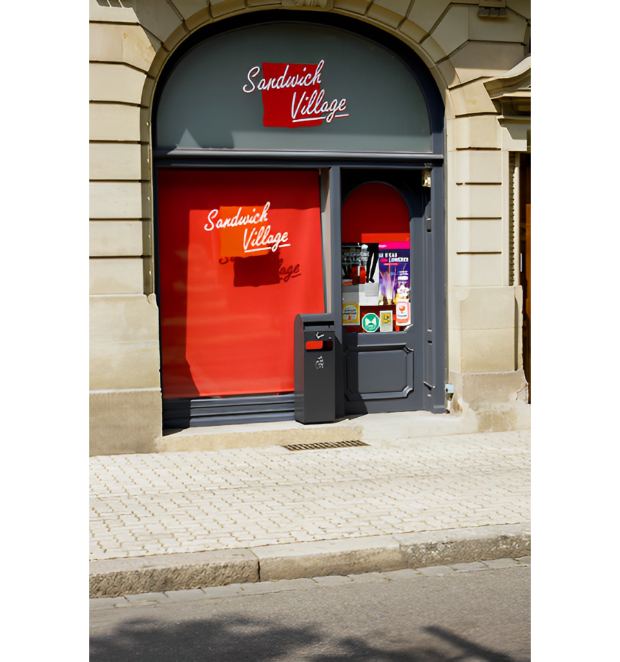 Son design lui permet de collecter à la fois les déchets classiques et les mégots de cigarettes, tout en assurant sécurité et propreté.