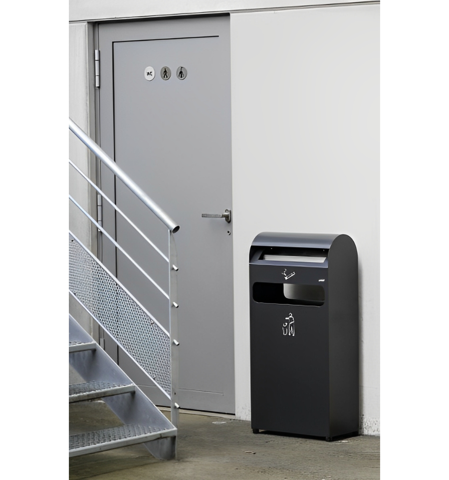 La poubelle cendrier est parfaitement adaptée aux espaces publics très fréquentés tels que les entrées de bâtiments, les zones fumeurs, les gares ou les centres commerciaux.