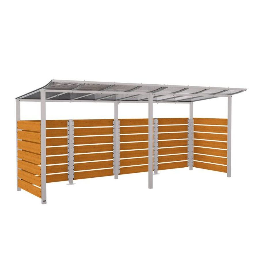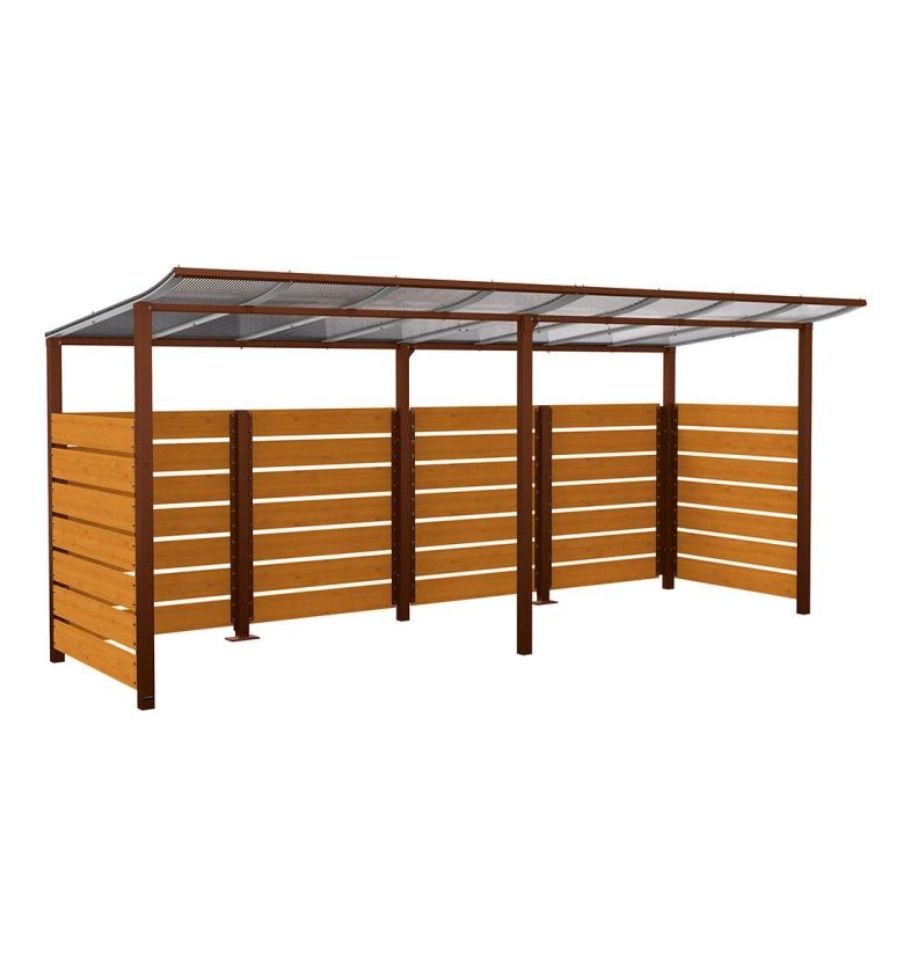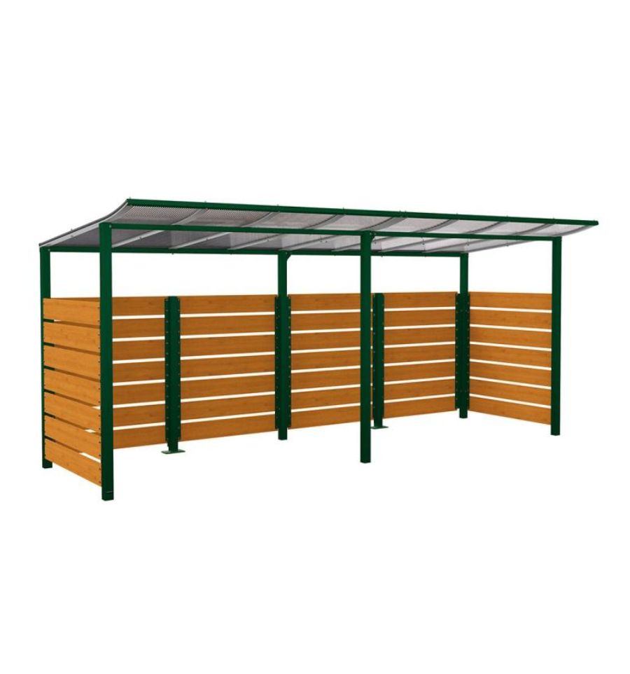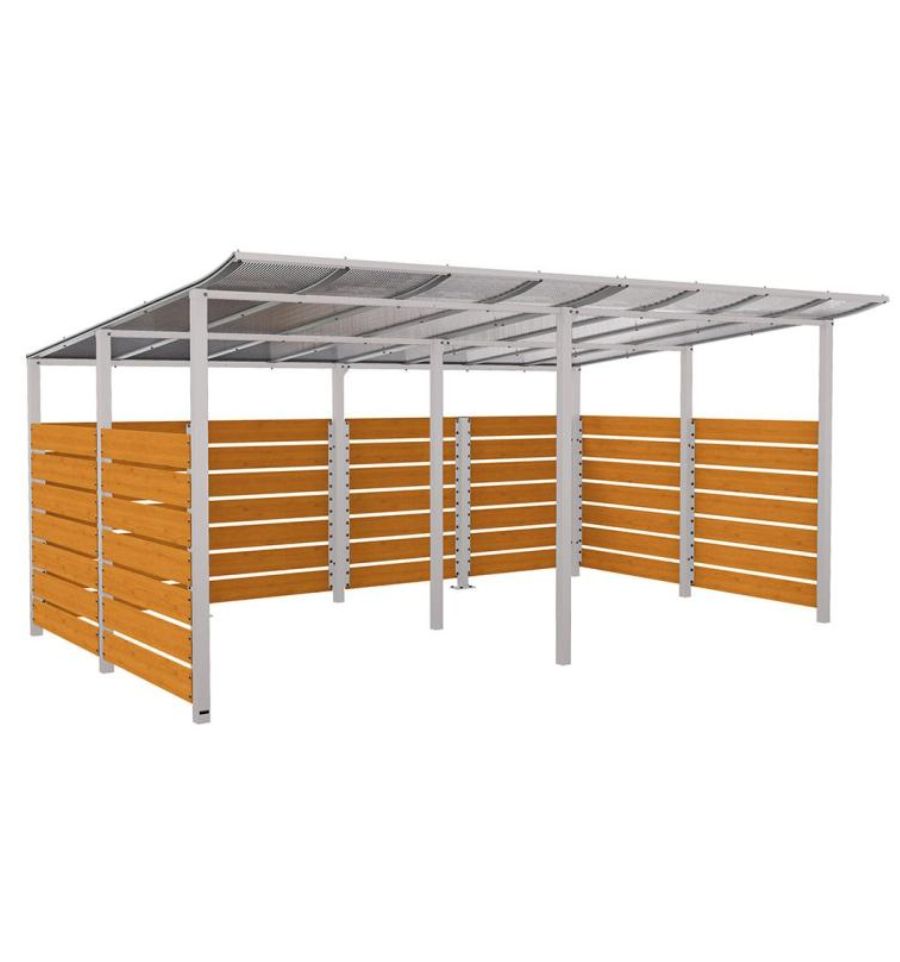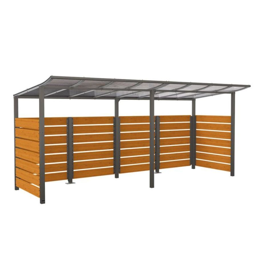 Idéal pour les collectivités et entreprises, l'abri vélo en bois permet de stocker jusqu'à 6 vélos en fonction des arceaux choisit.