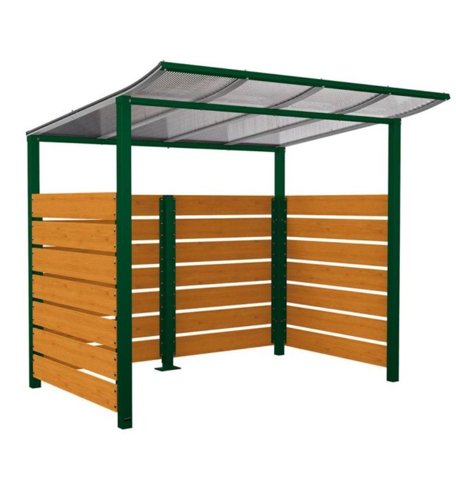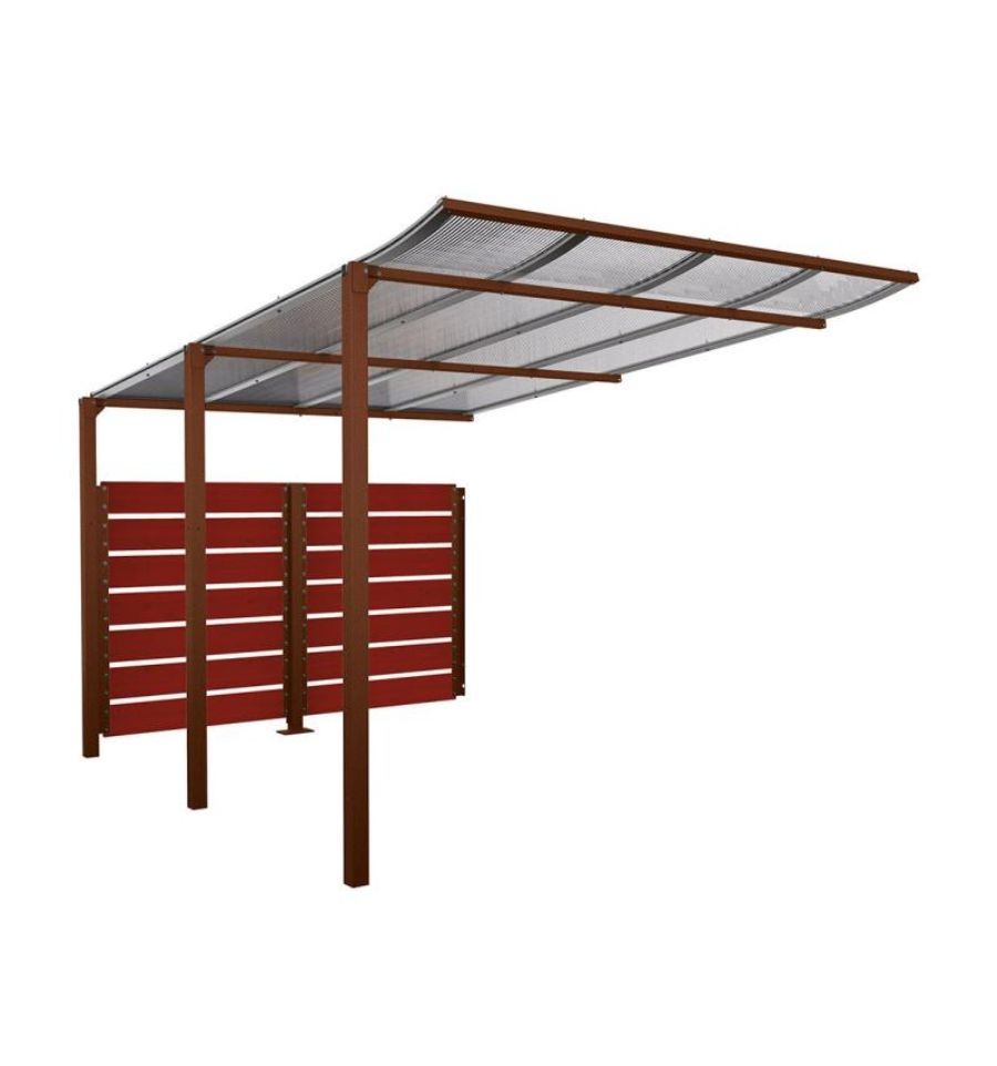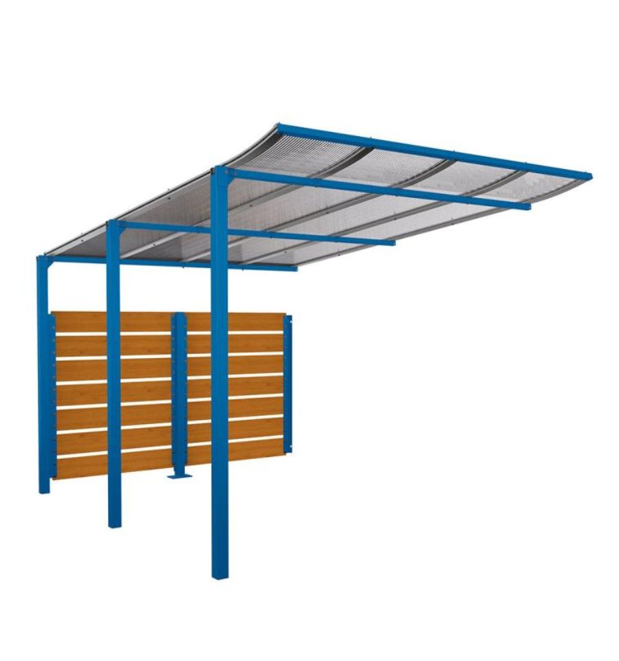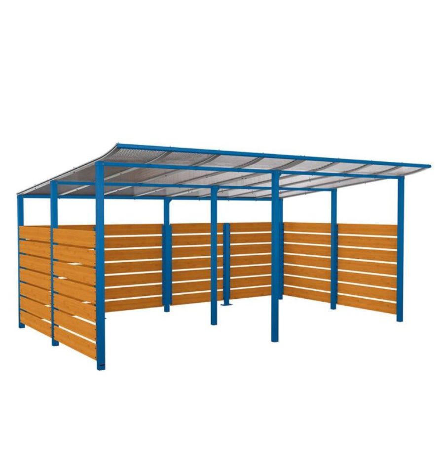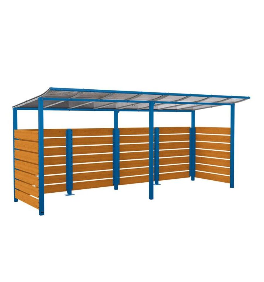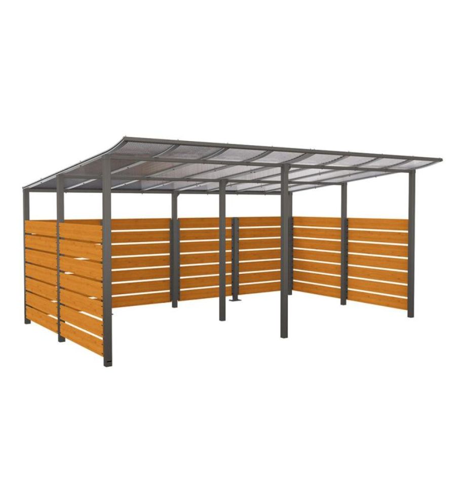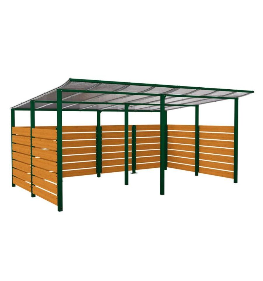 La structure est réalisée avec des poteaux en tube, en acier de 70 × 70 mm. Les bardages de fond et latéraux sont conçus en stratifié compact d'épaisseur 13 mm lui permettant d'être durable, résistant, face à l'usure, l'humidité et à la chaleur.