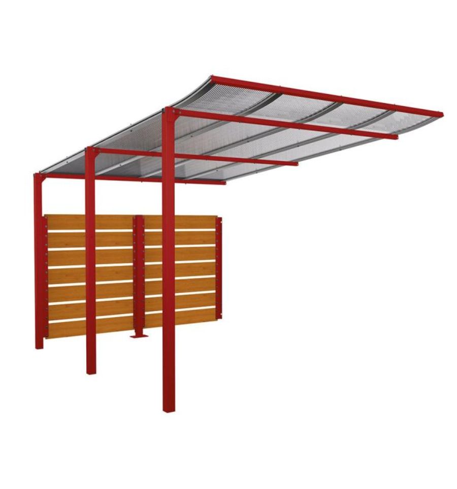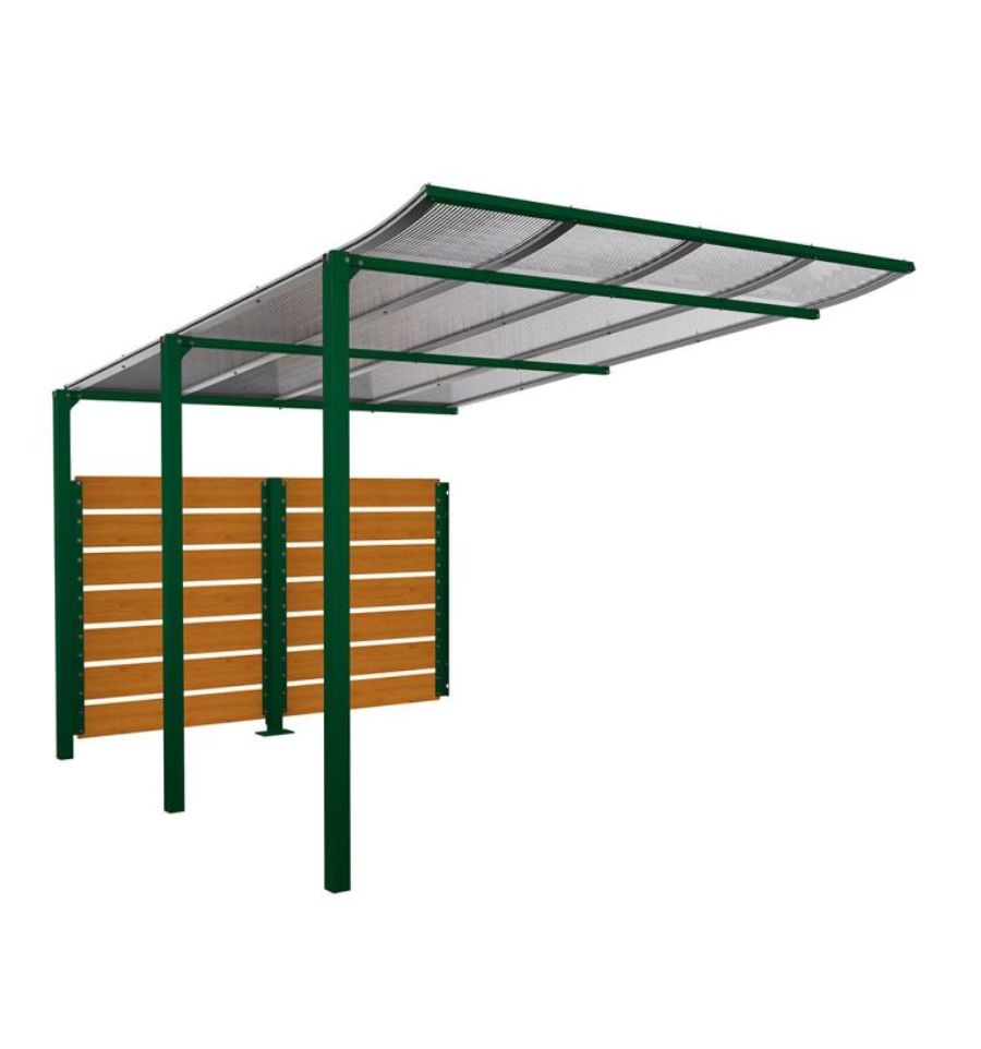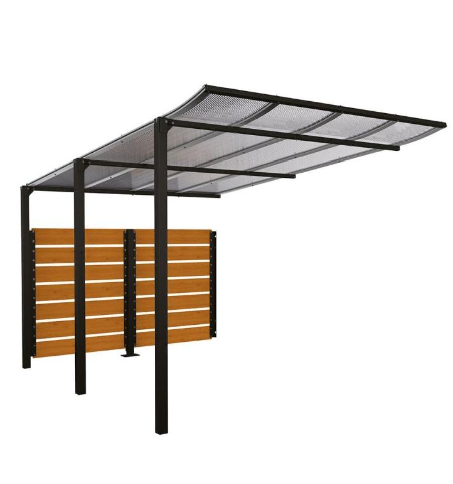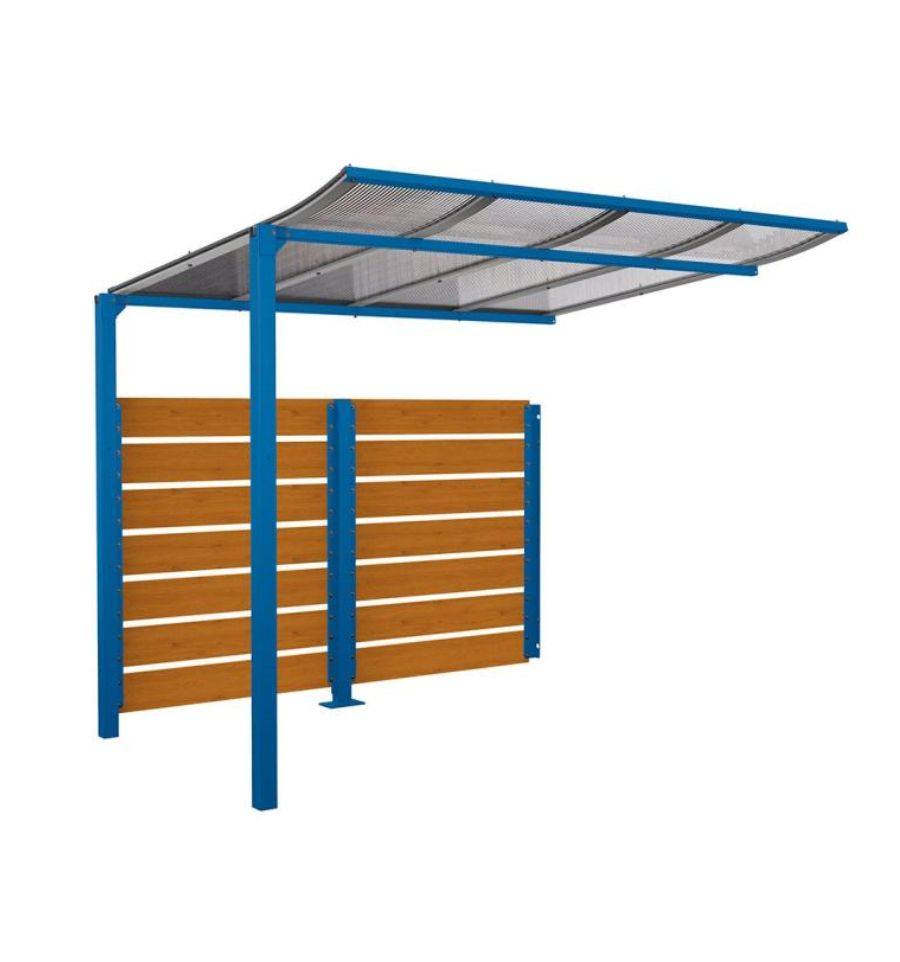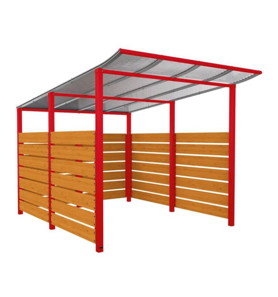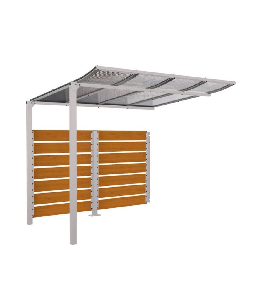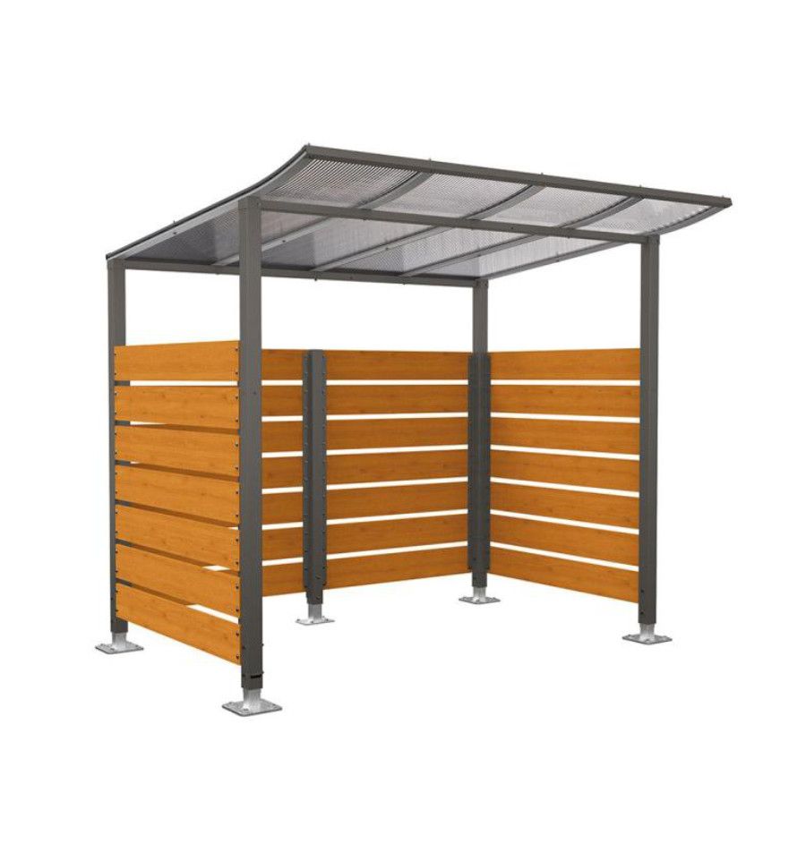 La structure est réalisée avec des poteaux en tube, en acier de 70 × 70 mm. Les bardages de fond et latéraux sont conçus en stratifié compact d'épaisseur 13 mm lui permettant d'être durable, résistant, face à l'usure, l'humidité et à la chaleur.