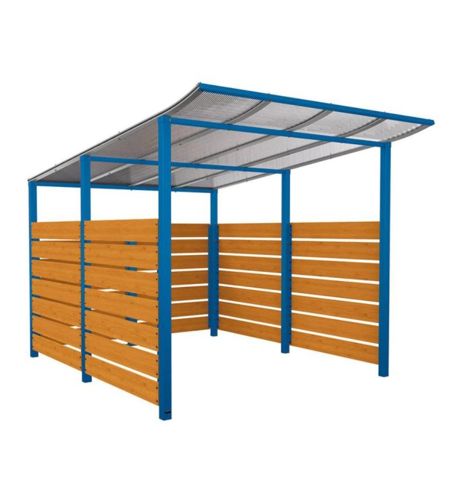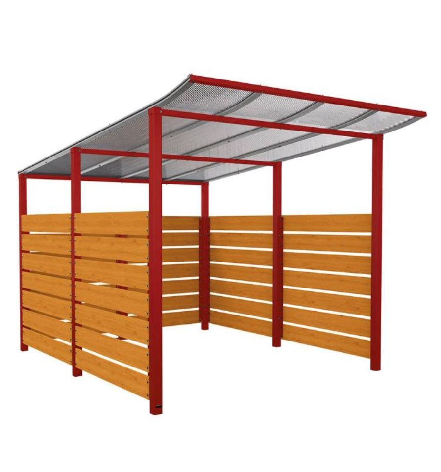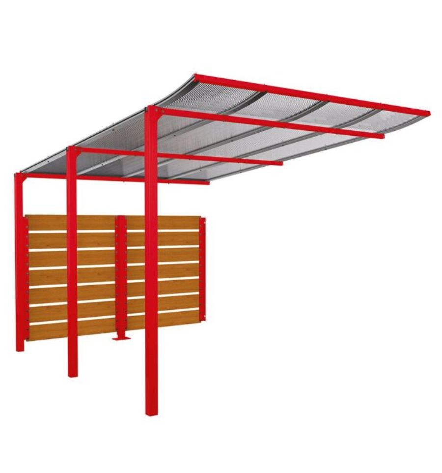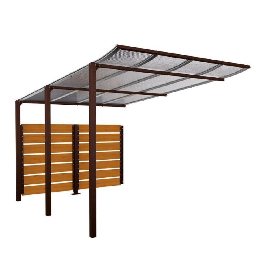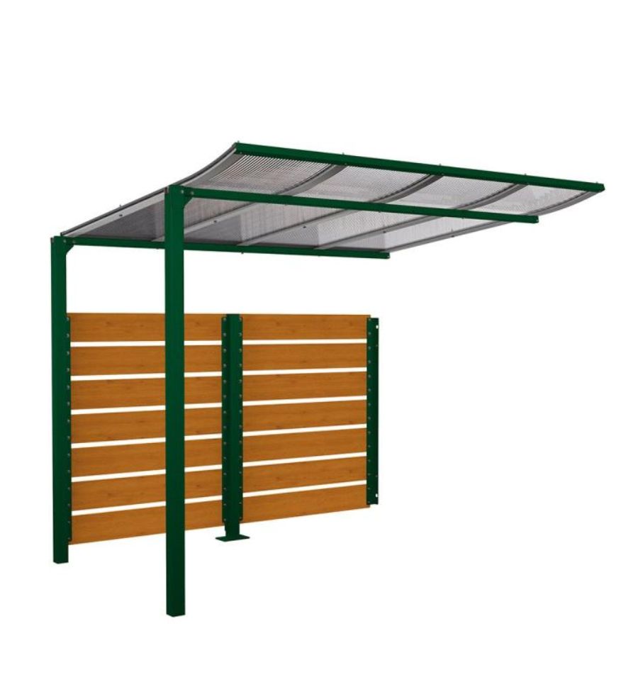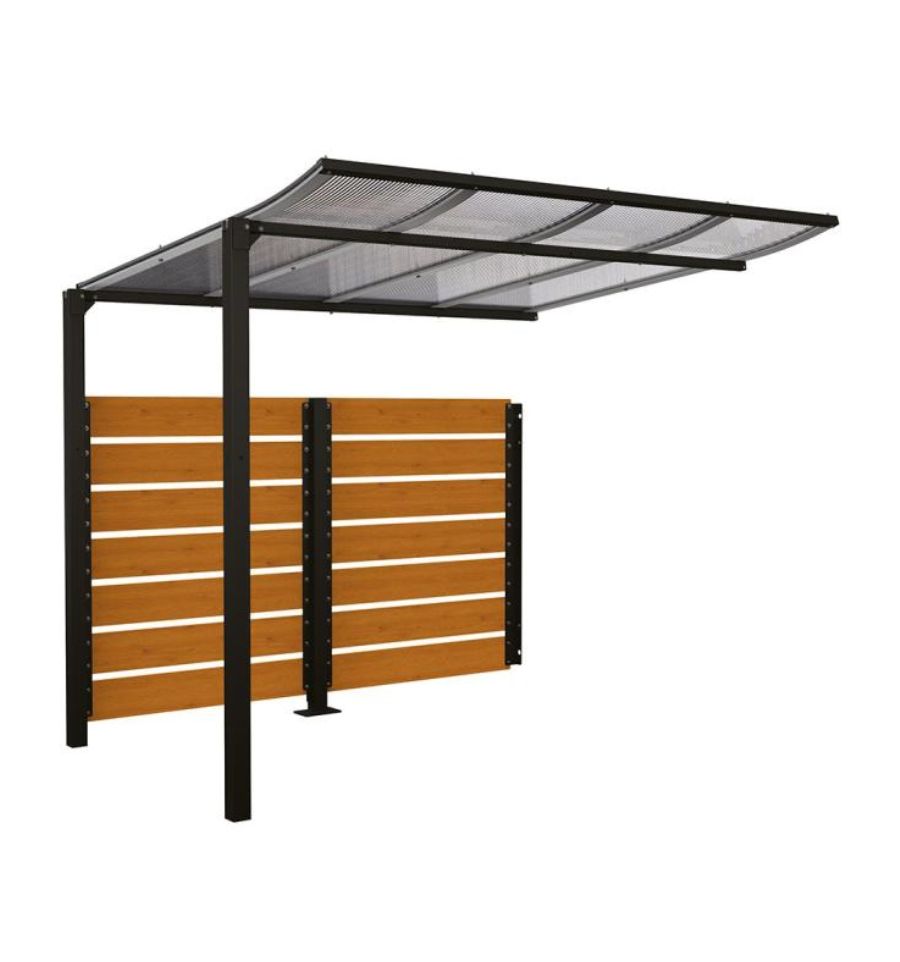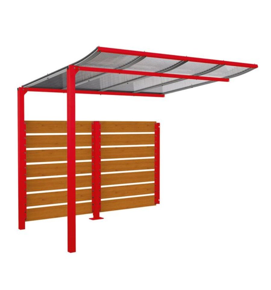 La structure est réalisée avec des poteaux en tube, en acier de 70 × 70 mm. Les bardages de fond et latéraux sont conçus en stratifié compact d'épaisseur 13 mm lui permettant d'être durable, résistant, face à l'usure, l'humidité et à la chaleur.