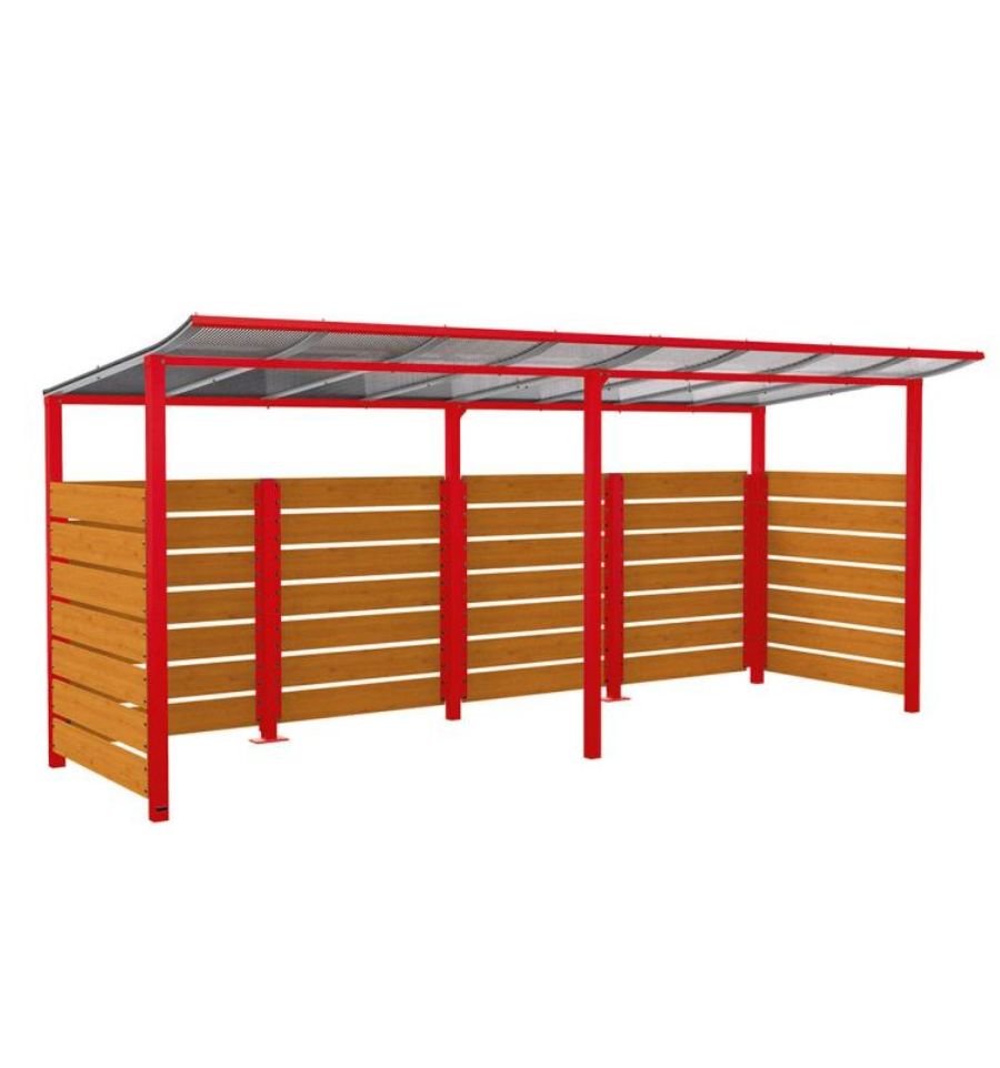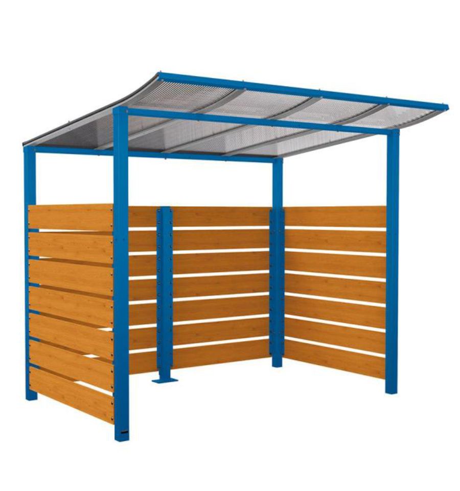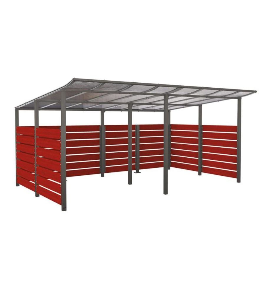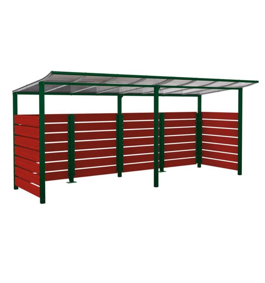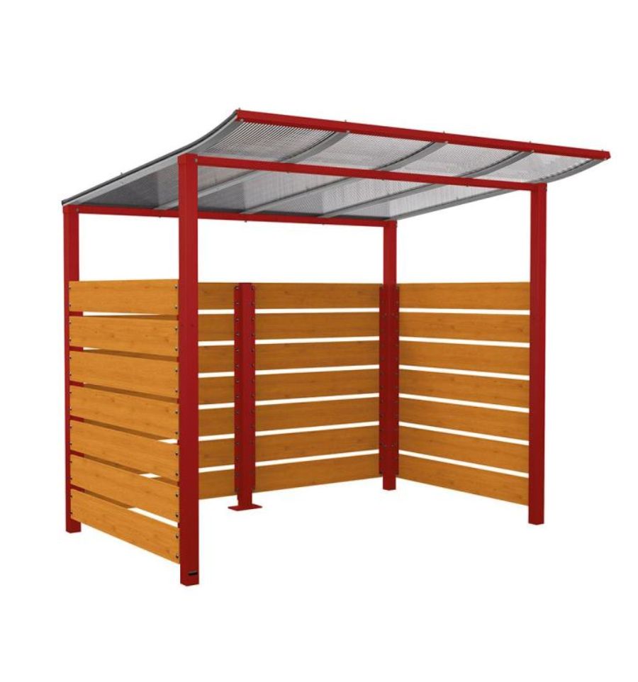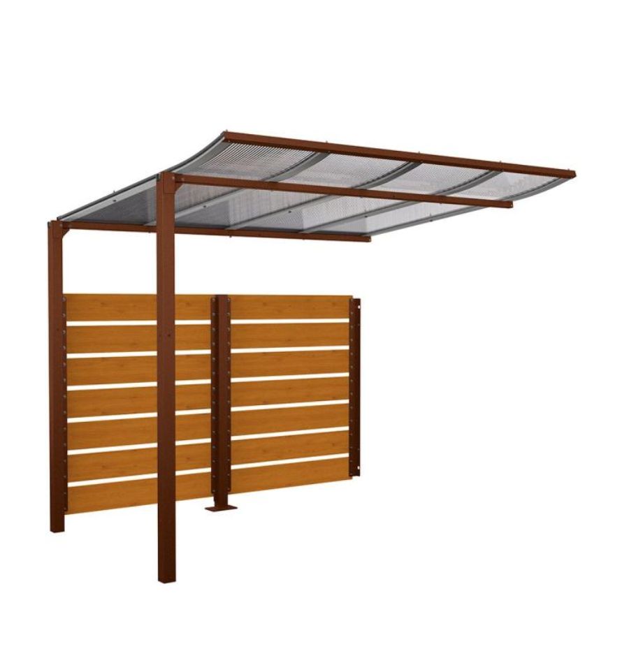 La structure est réalisée avec des poteaux en tube, en acier de 70 × 70 mm. Les bardages de fond et latéraux sont conçus en stratifié compact d'épaisseur 13 mm lui permettant d'être durable, résistant, face à l'usure, l'humidité et à la chaleur.