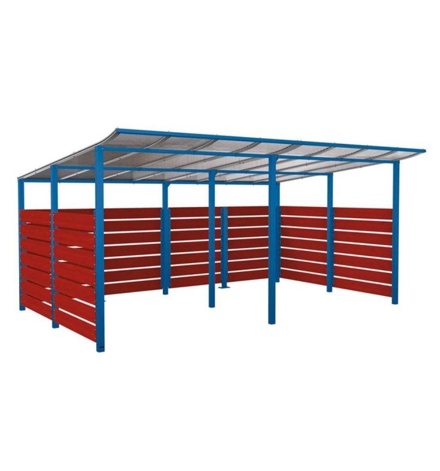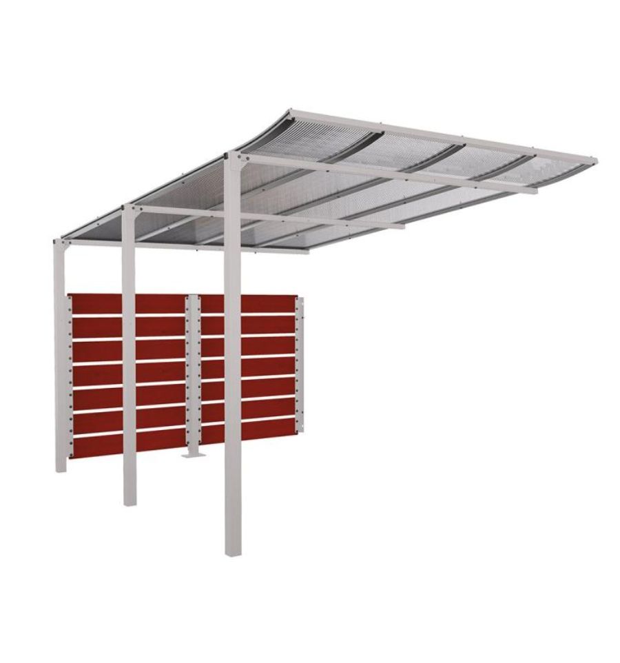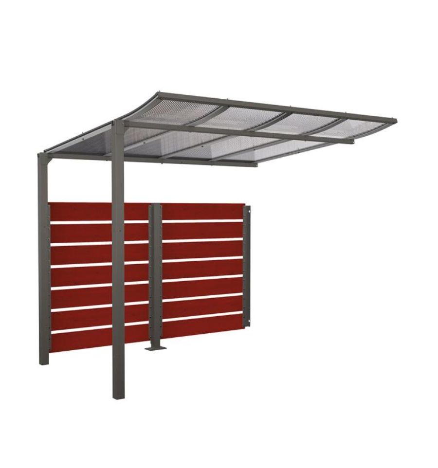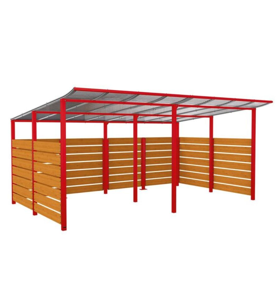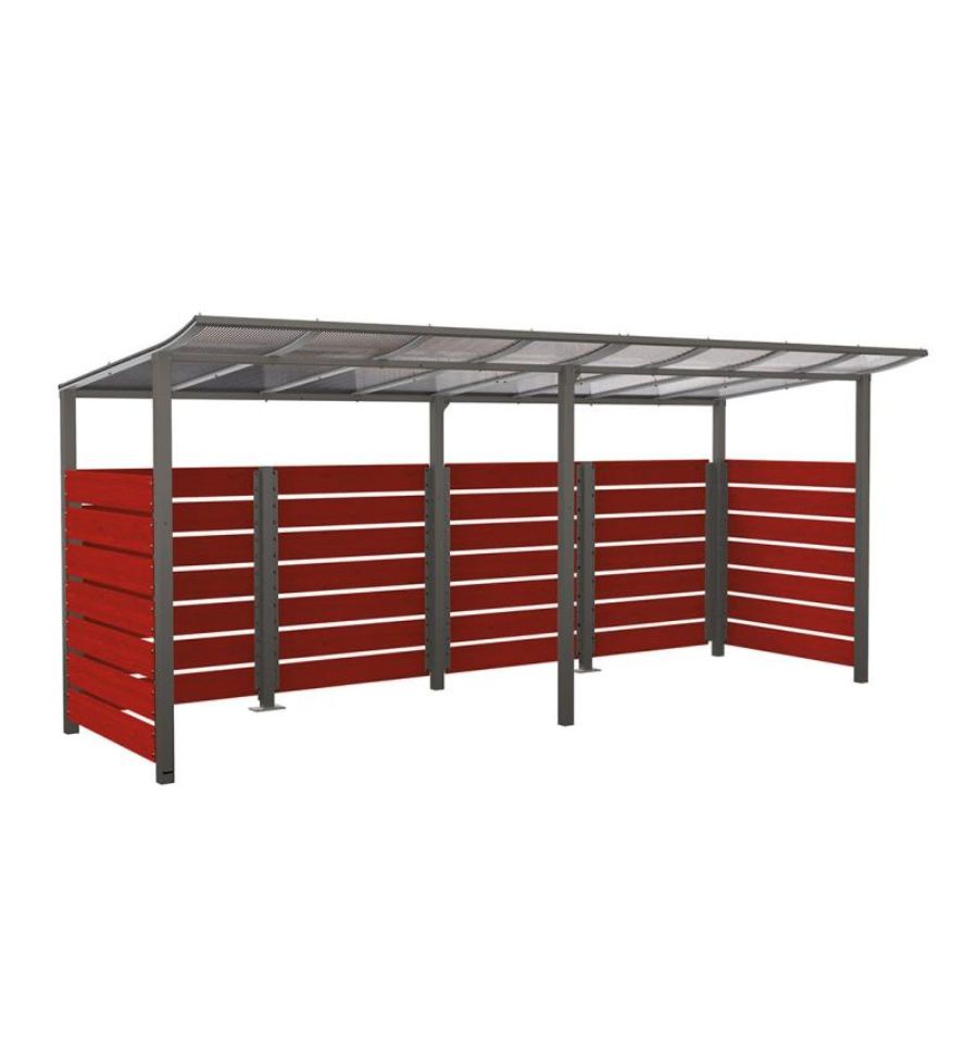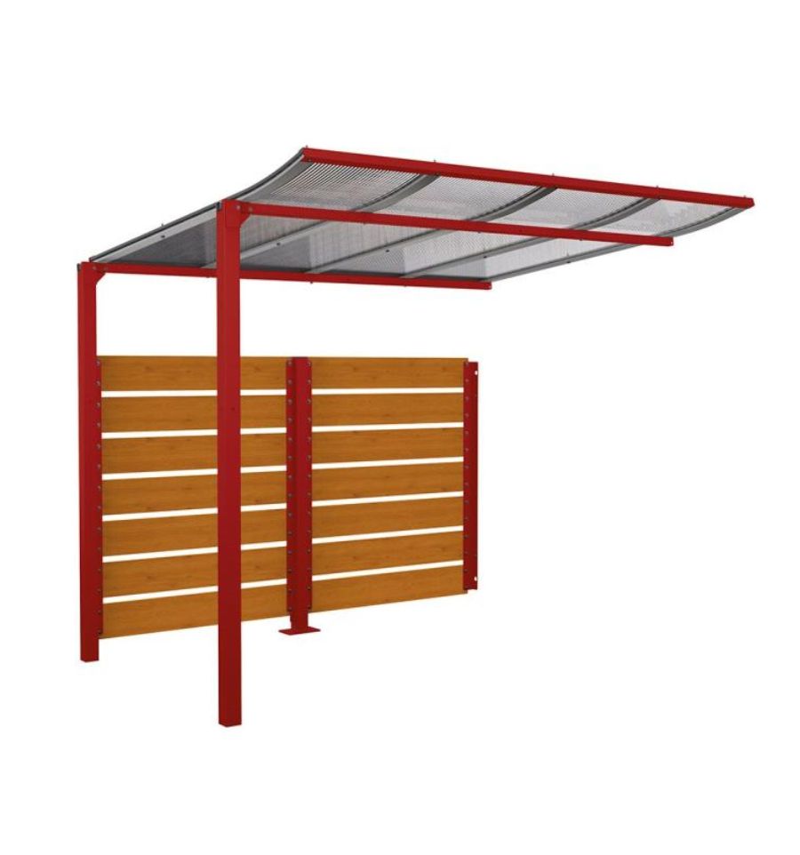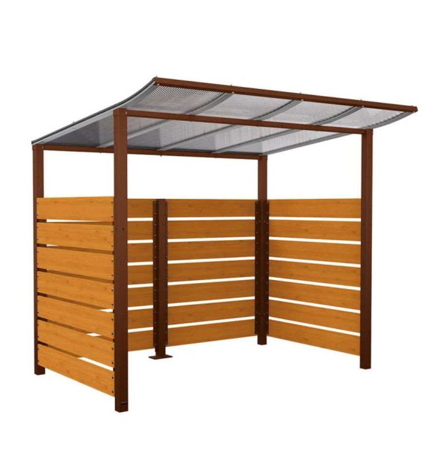 La structure est réalisée avec des poteaux en tube, en acier de 70 × 70 mm. Les bardages de fond et latéraux sont conçus en stratifié compact d'épaisseur 13 mm lui permettant d'être durable, résistant, face à l'usure, l'humidité et à la chaleur.