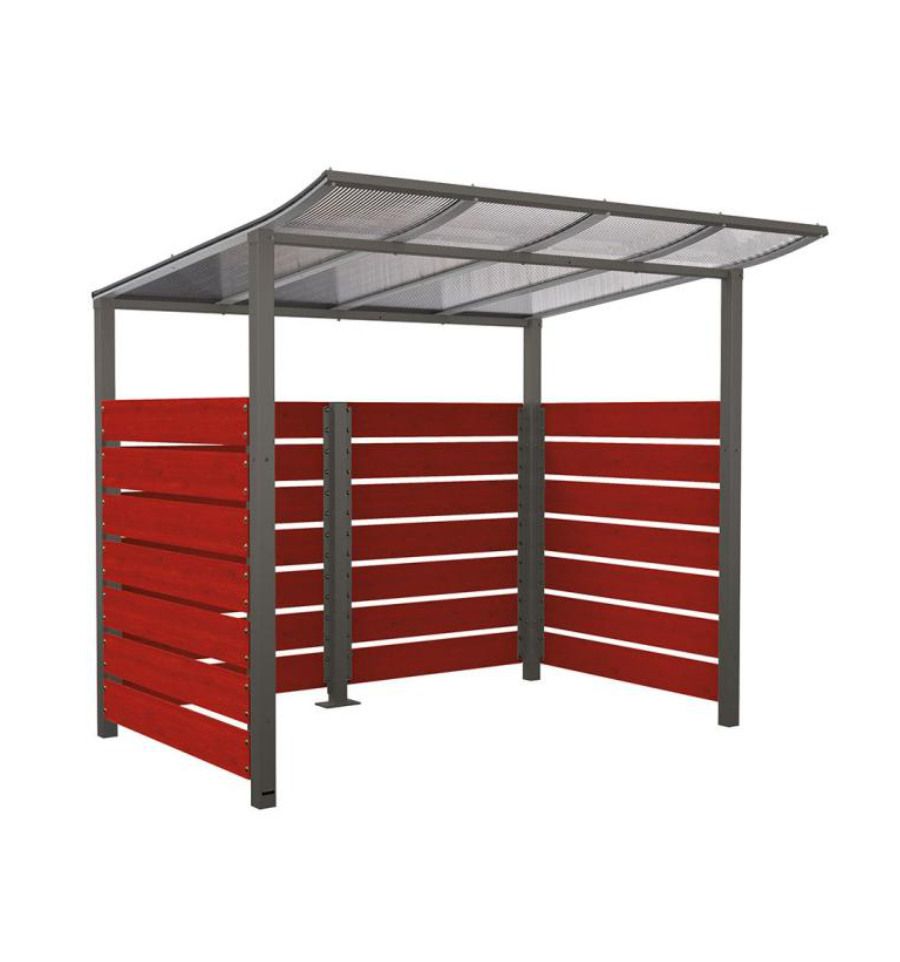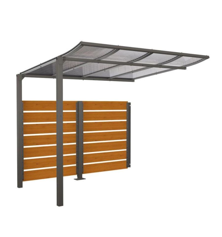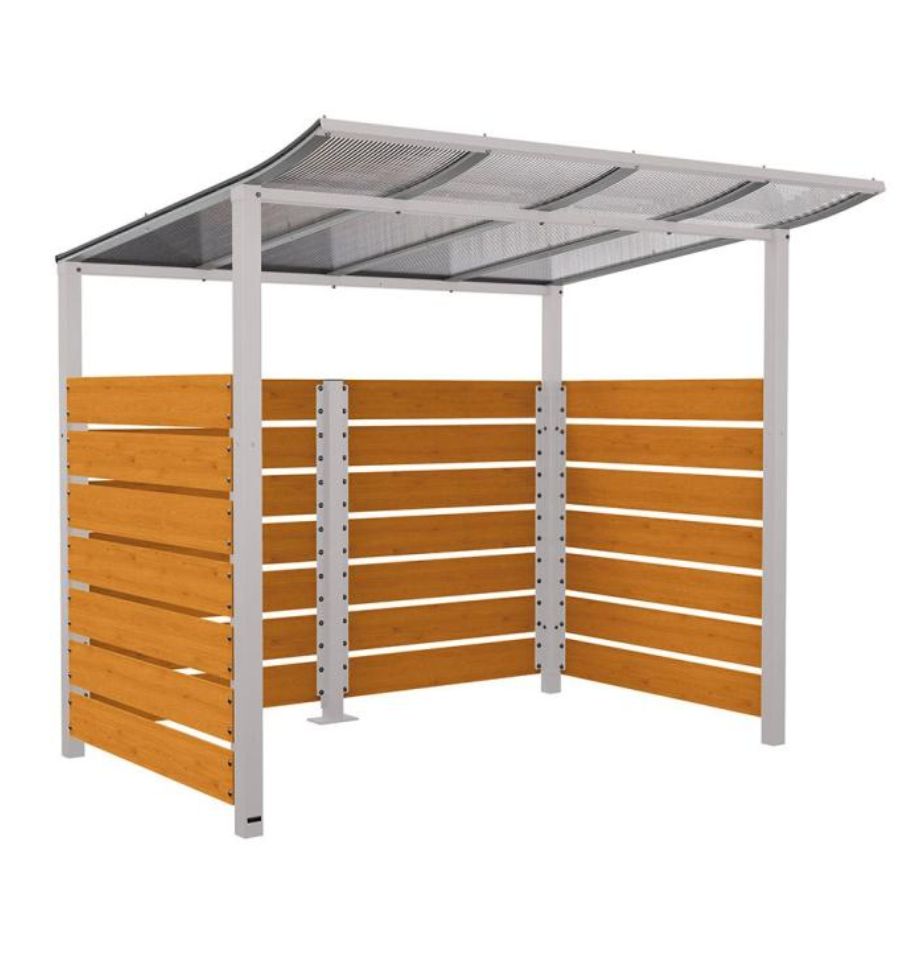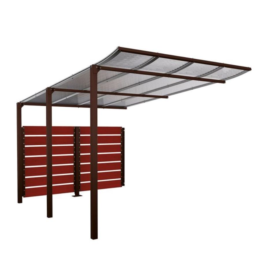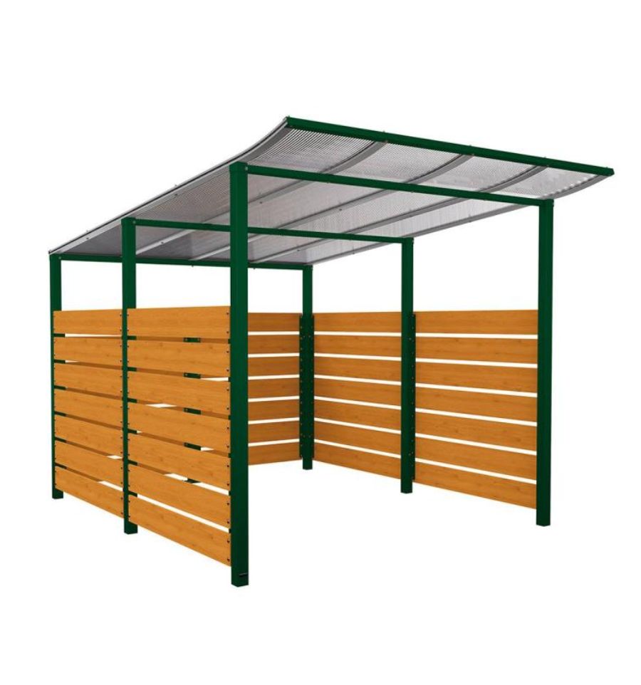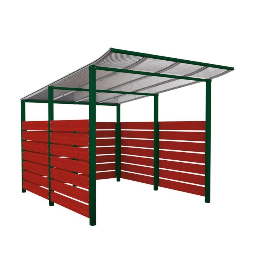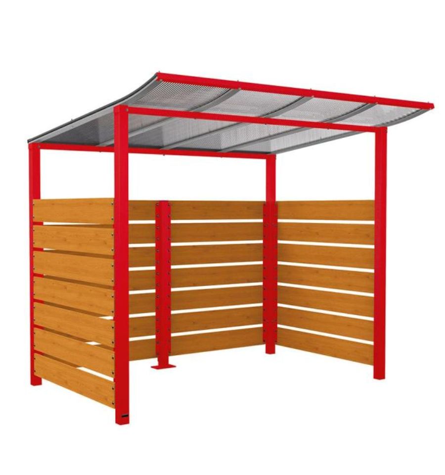 La structure est réalisée avec des poteaux en tube, en acier de 70 × 70 mm. Les bardages de fond et latéraux sont conçus en stratifié compact d'épaisseur 13 mm lui permettant d'être durable, résistant, face à l'usure, l'humidité et à la chaleur.