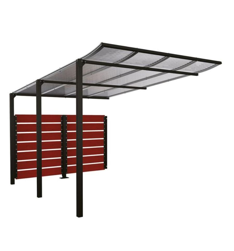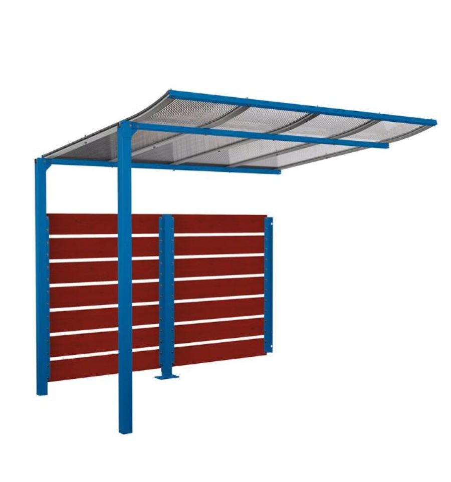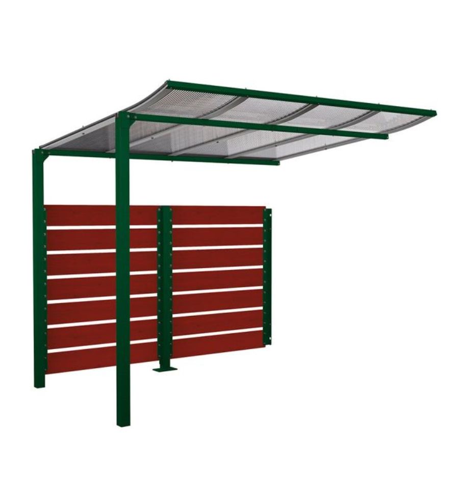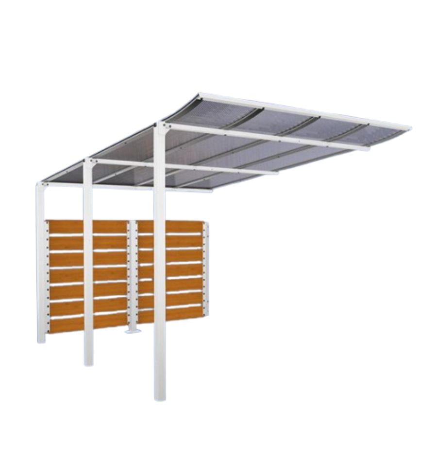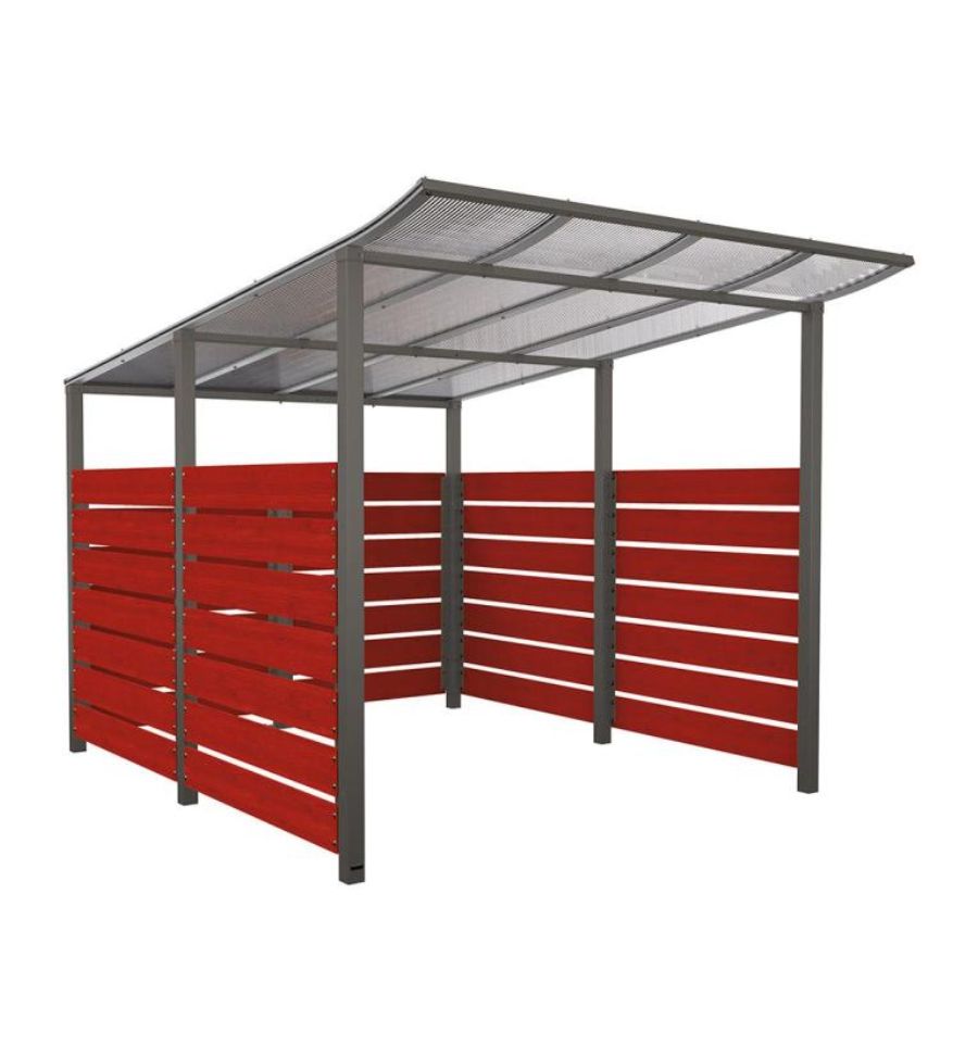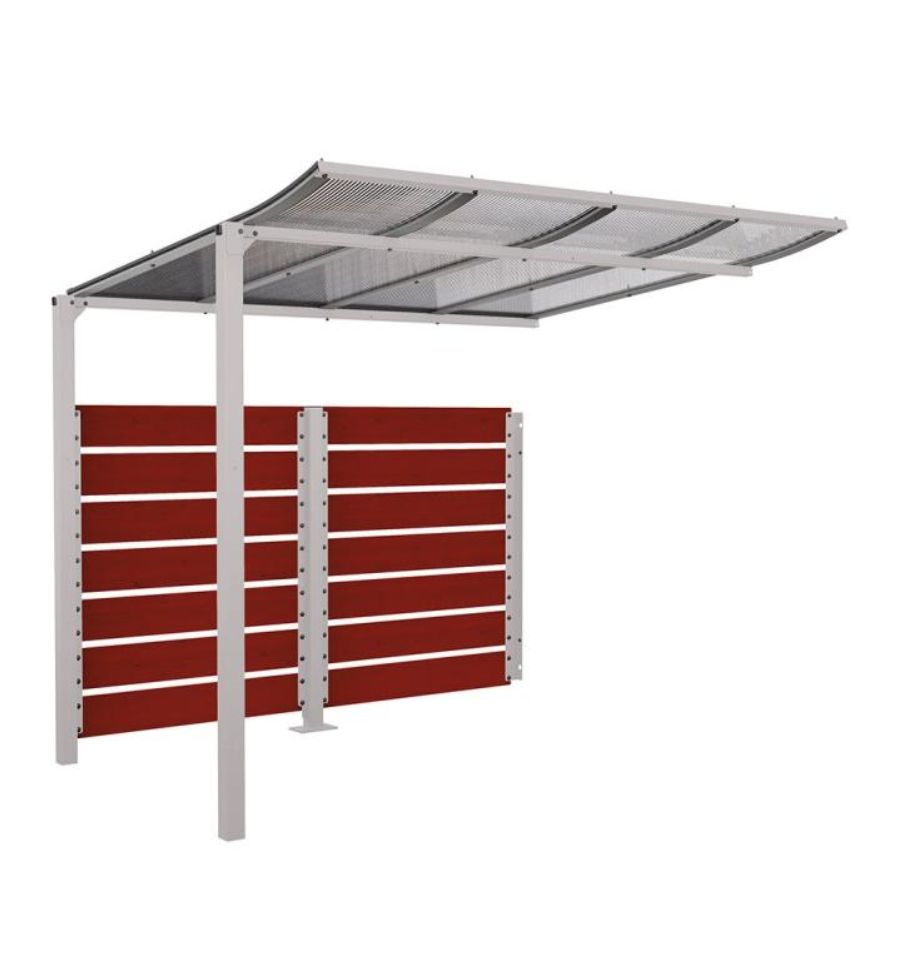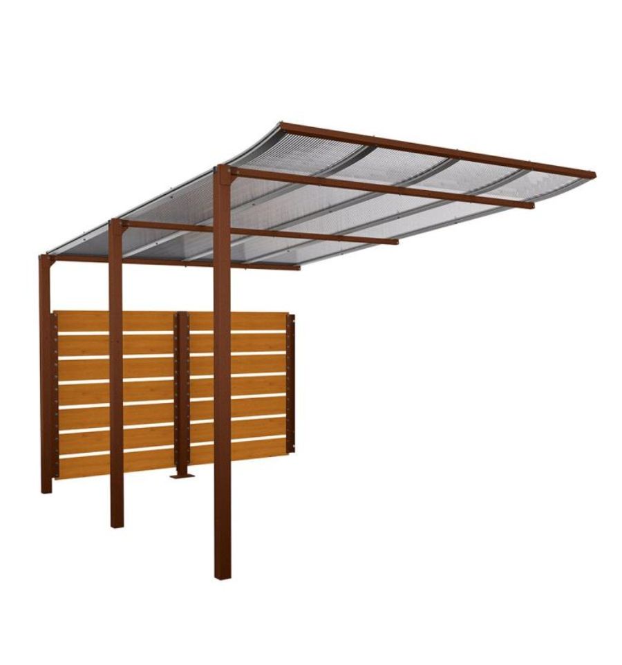 La structure est réalisée avec des poteaux en tube, en acier de 70 × 70 mm. Les bardages de fond et latéraux sont conçus en stratifié compact d'épaisseur 13 mm lui permettant d'être durable, résistant, face à l'usure, l'humidité et à la chaleur.