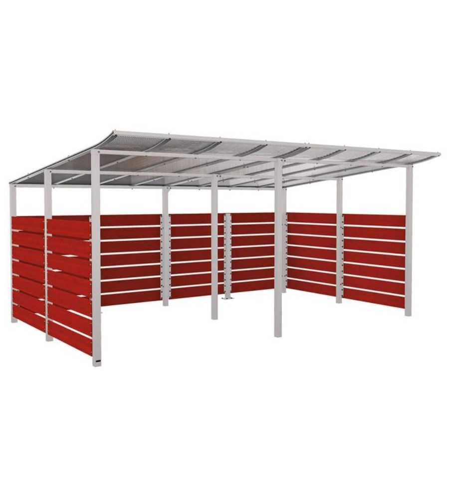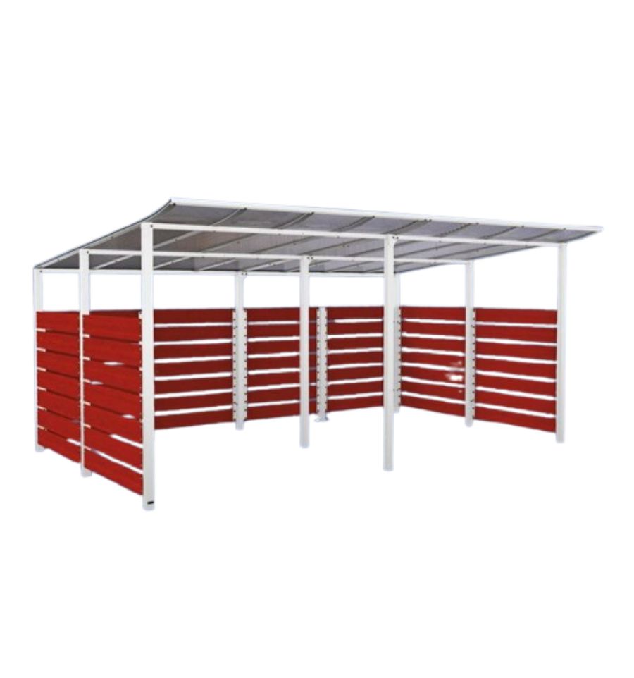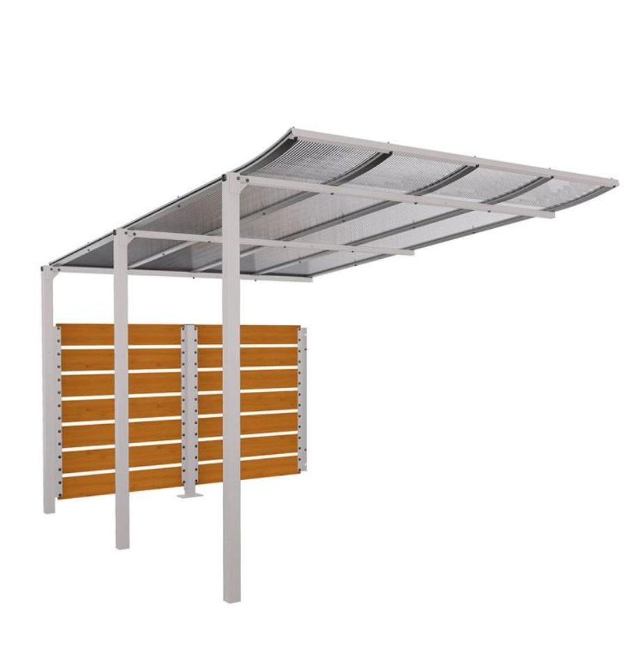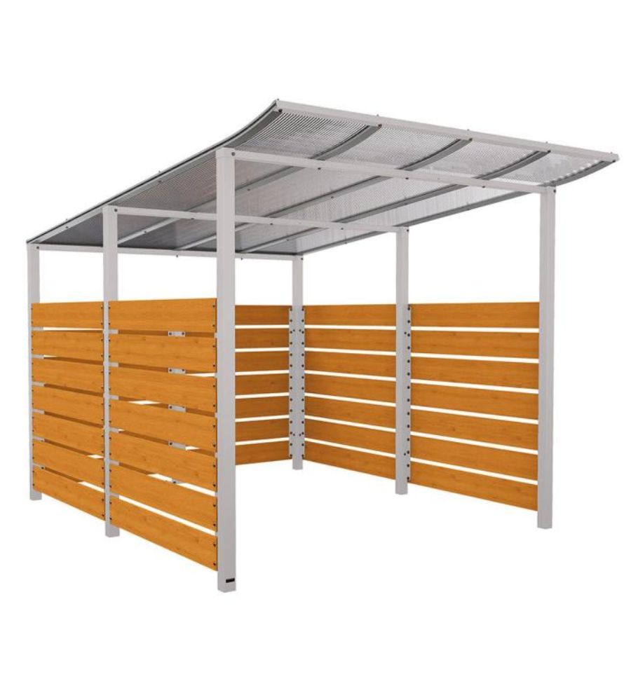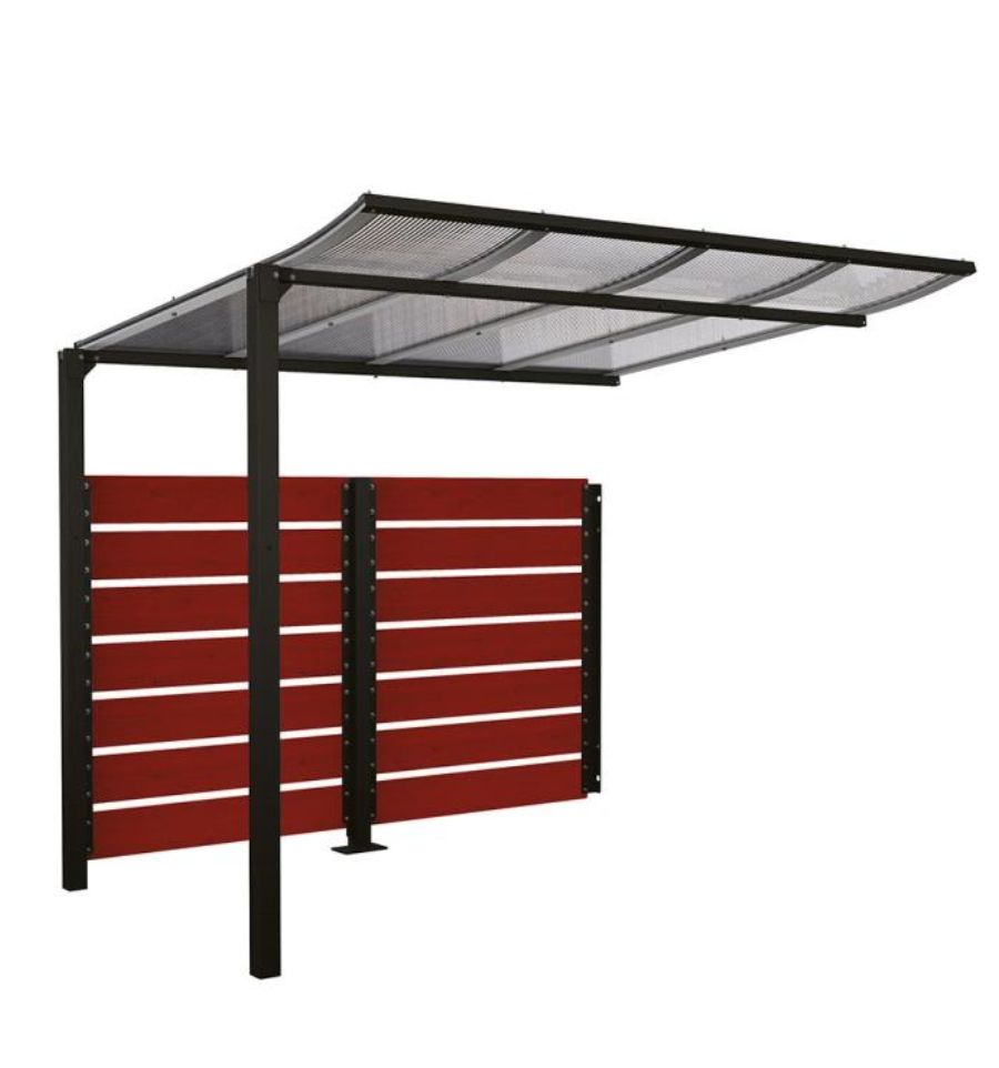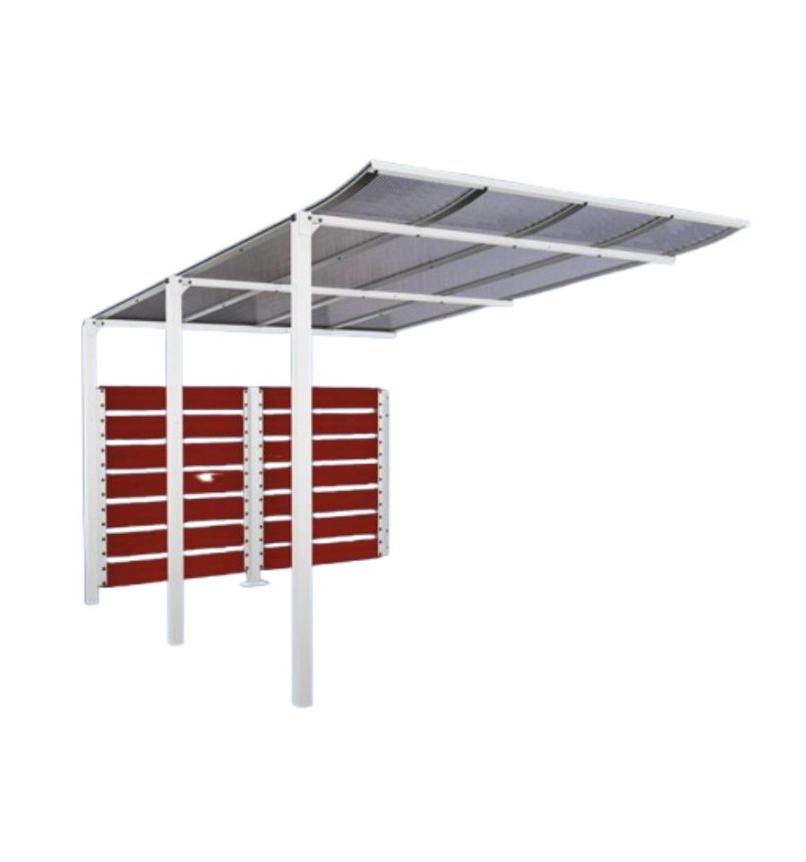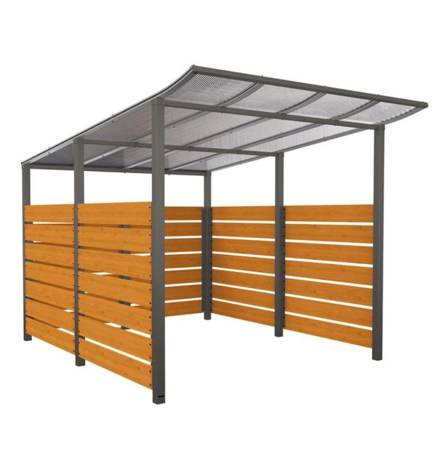 La structure est réalisée avec des poteaux en tube, en acier de 70 × 70 mm. Les bardages de fond et latéraux sont conçus en stratifié compact d'épaisseur 13 mm lui permettant d'être durable, résistant, face à l'usure, l'humidité et à la chaleur.