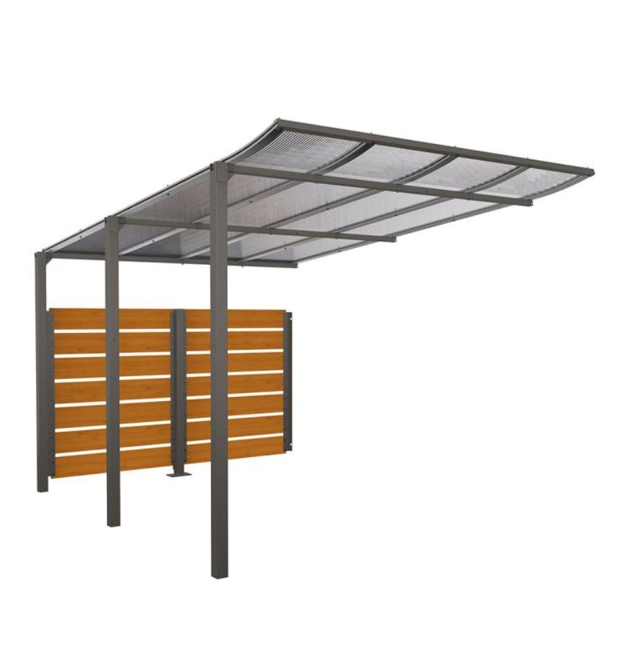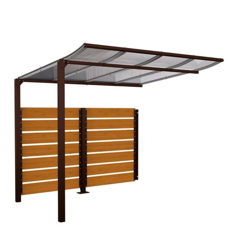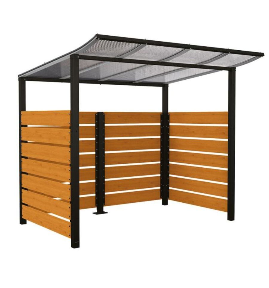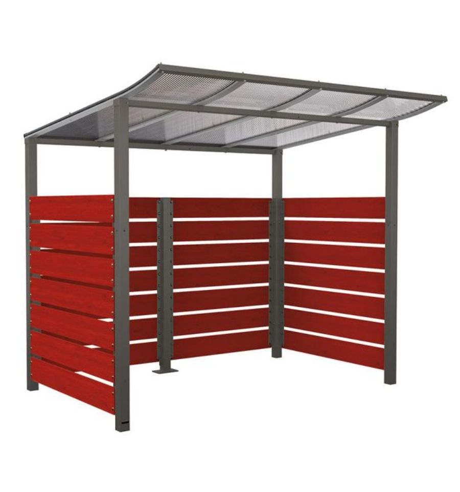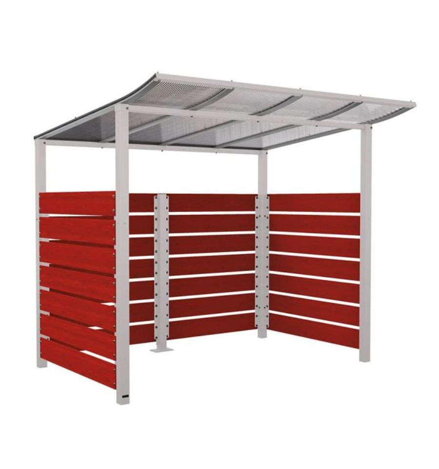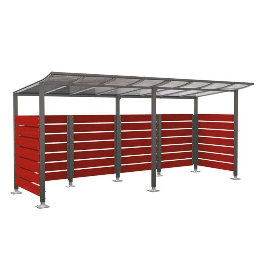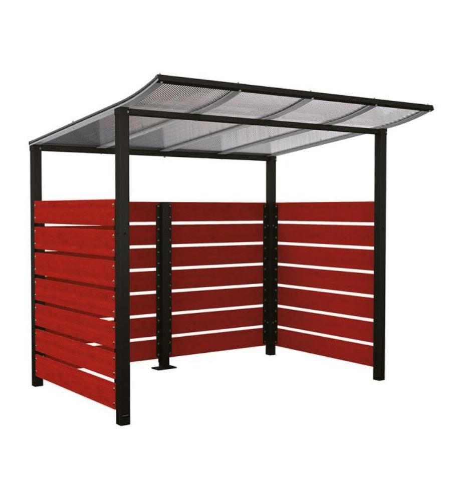La structure est réalisée avec des poteaux en tube, en acier de 70 × 70 mm. Les bardages de fond et latéraux sont conçus en stratifié compact d'épaisseur 13 mm lui permettant d'être durable, résistant, face à l'usure, l'humidité et à la chaleur.