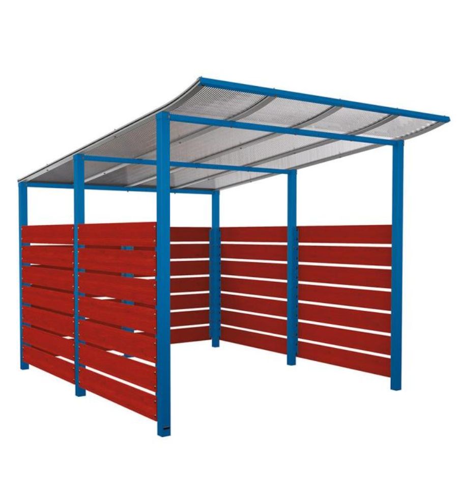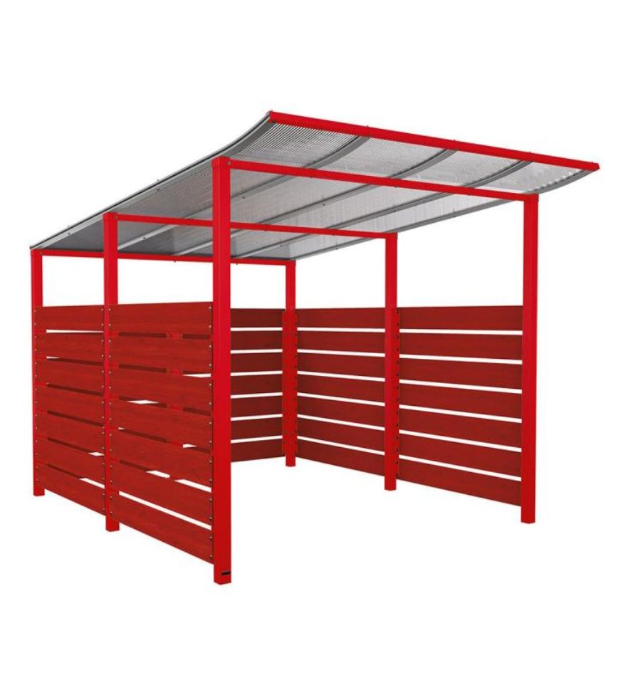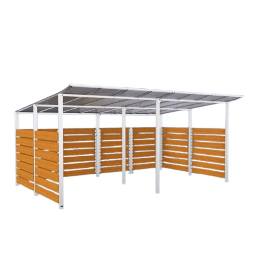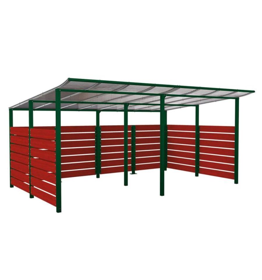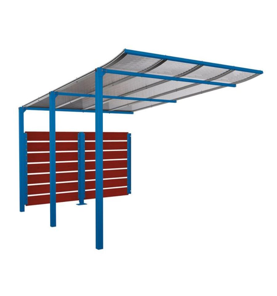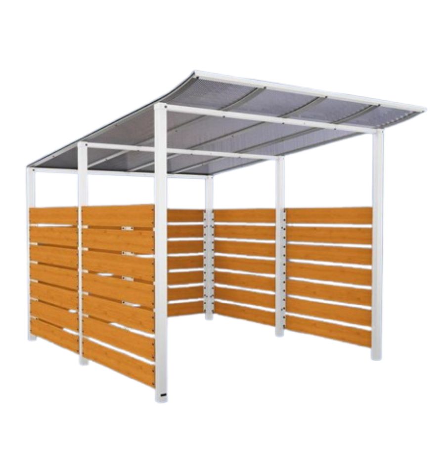La structure est réalisée avec des poteaux en tube, en acier de 70 × 70 mm. Les bardages de fond et latéraux sont conçus en stratifié compact d'épaisseur 13 mm lui permettant d'être durable, résistant, face à l'usure, l'humidité et à la chaleur.