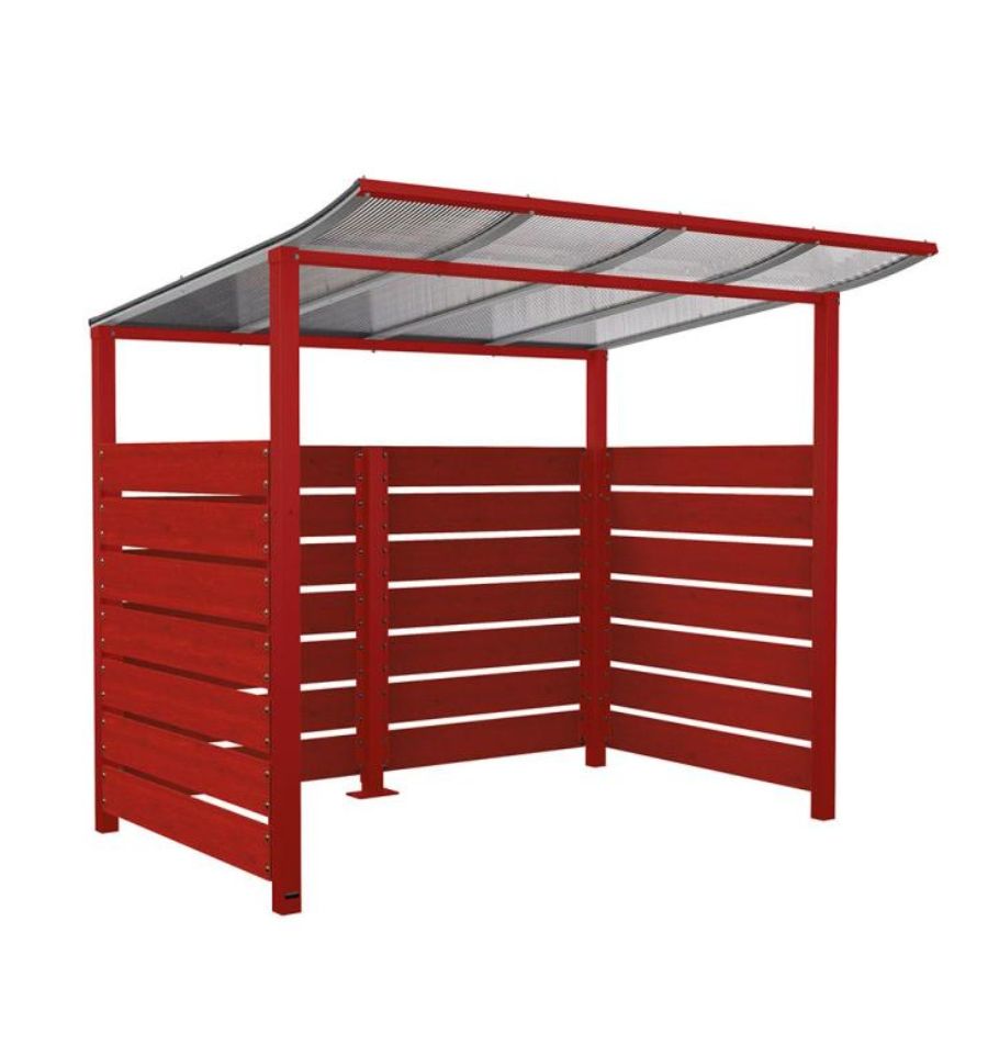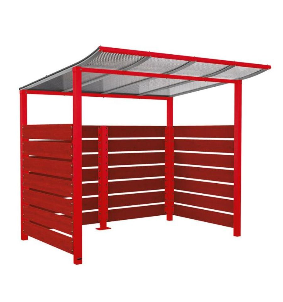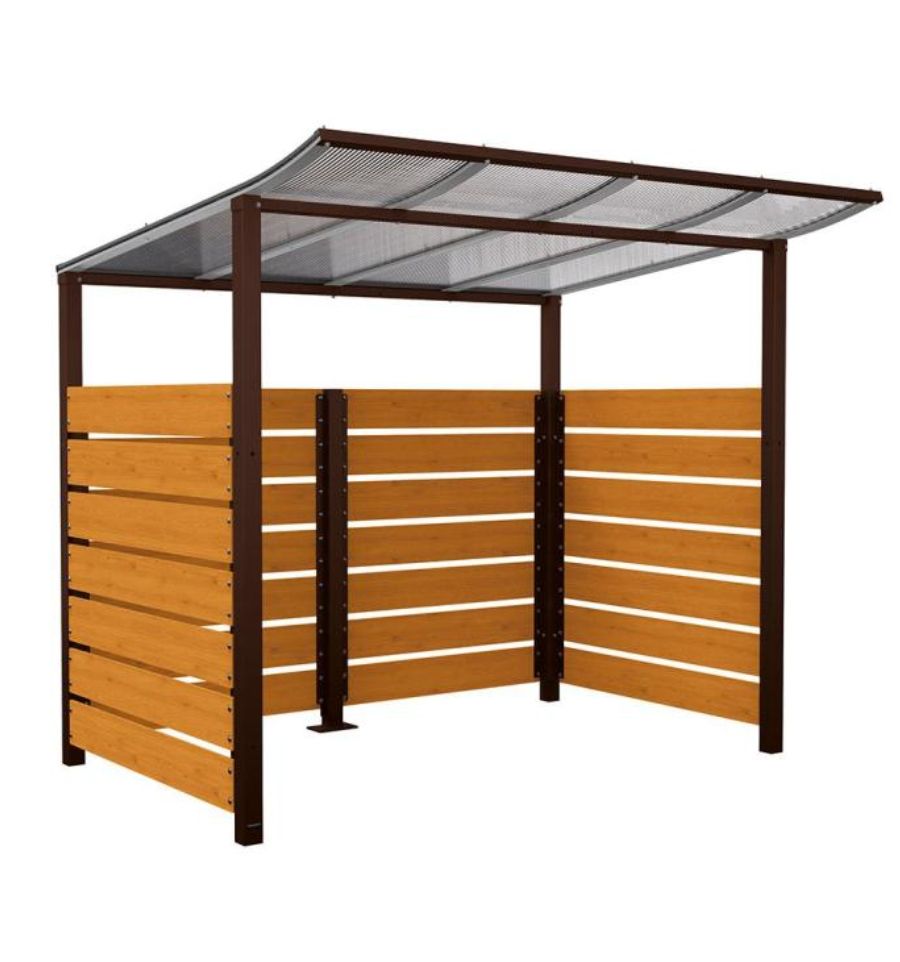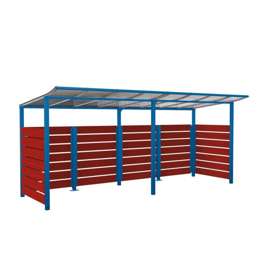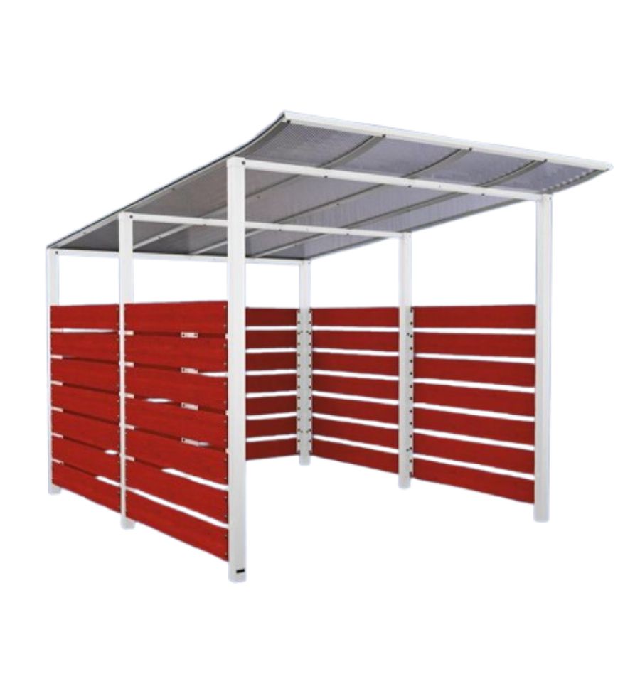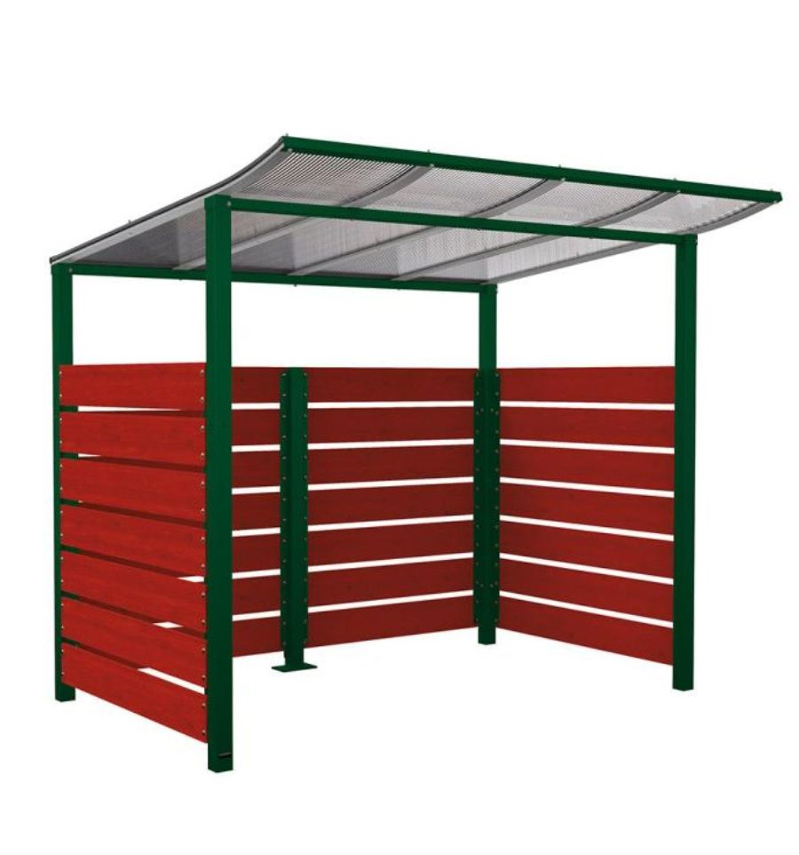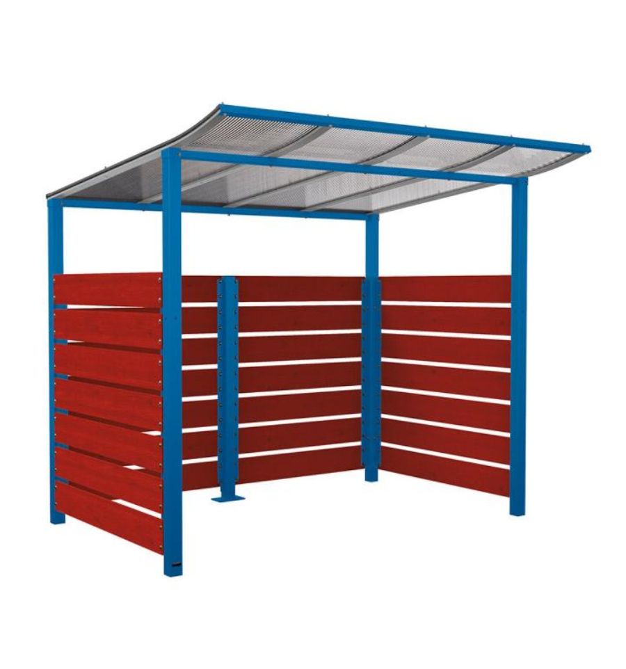 La structure est réalisée avec des poteaux en tube, en acier de 70 × 70 mm. Les bardages de fond et latéraux sont conçus en stratifié compact d'épaisseur 13 mm lui permettant d'être durable, résistant, face à l'usure, l'humidité et à la chaleur.