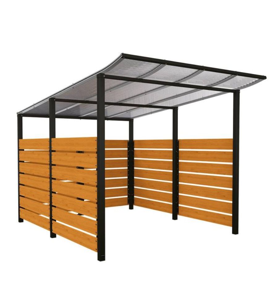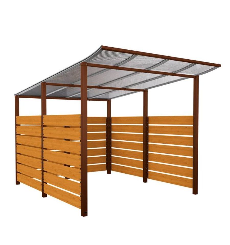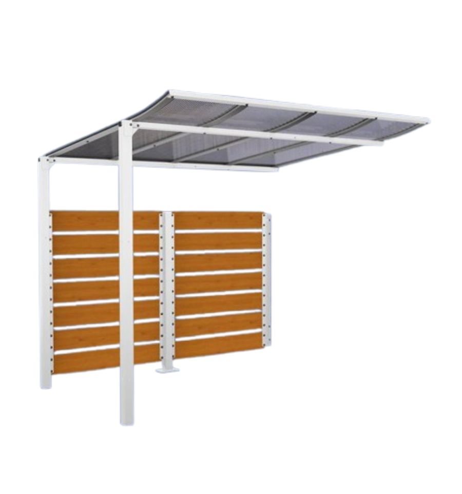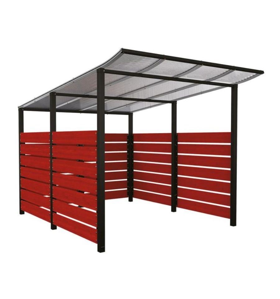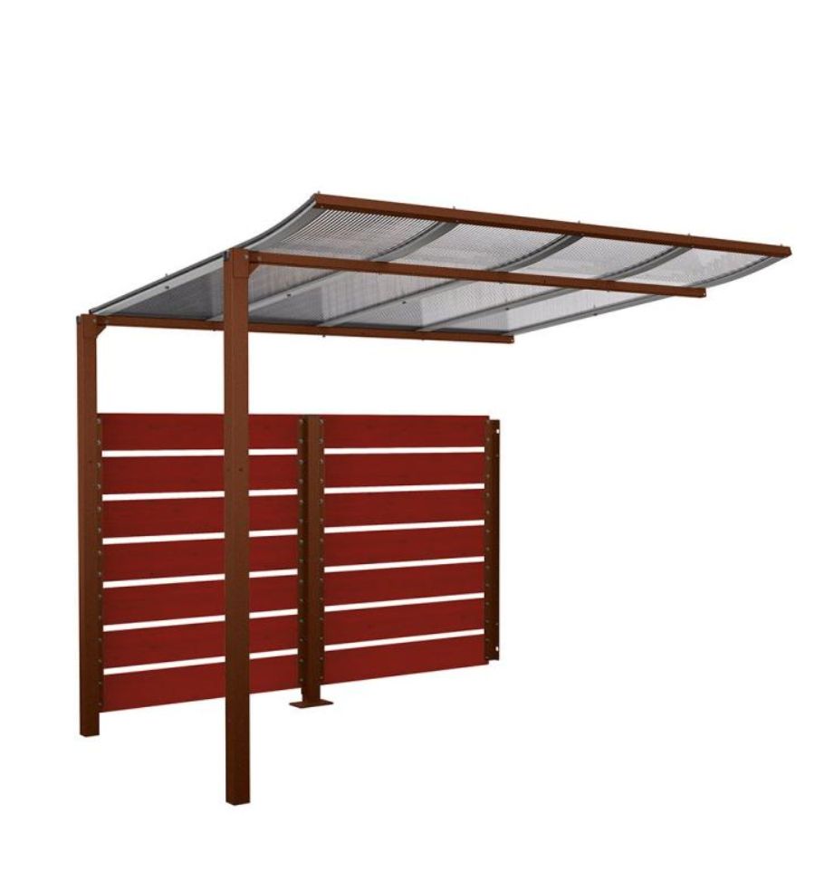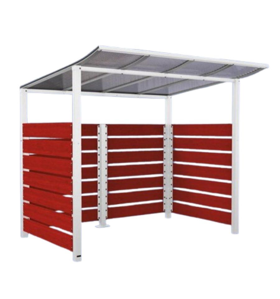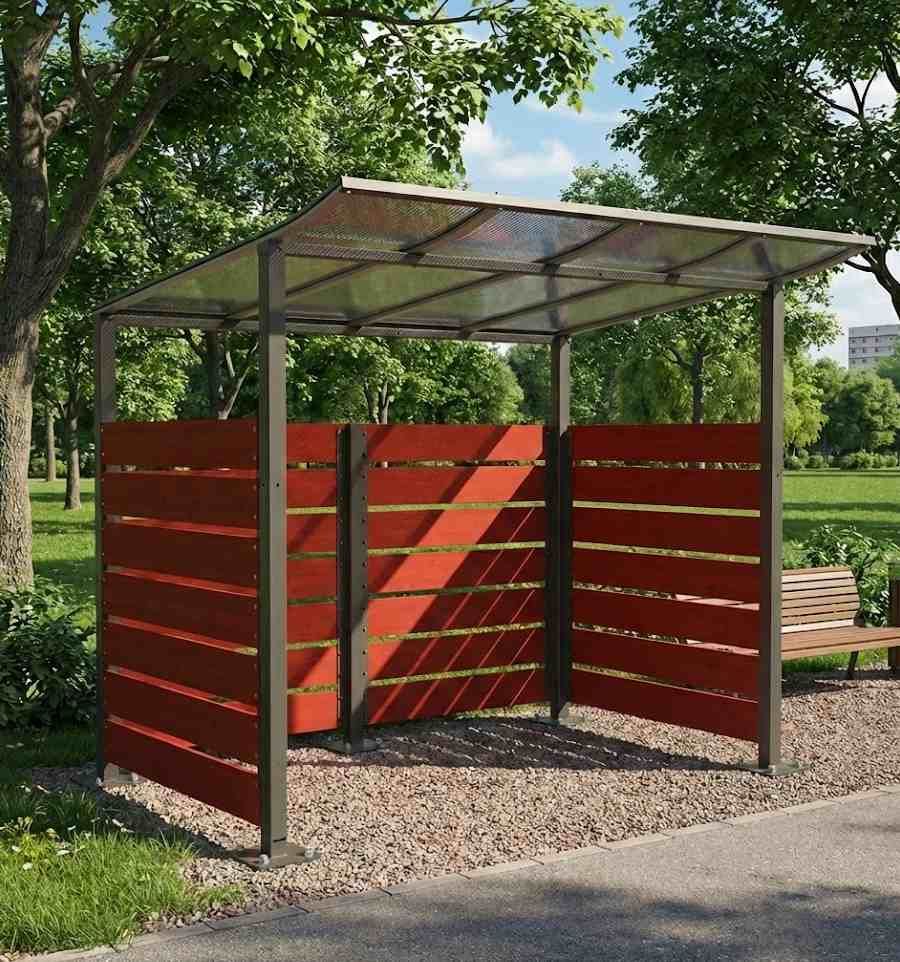 La structure est réalisée avec des poteaux en tube, en acier de 70 × 70 mm. Les bardages de fond et latéraux sont conçus en stratifié compact d'épaisseur 13 mm lui permettant d'être durable, résistant, face à l'usure, l'humidité et à la chaleur.