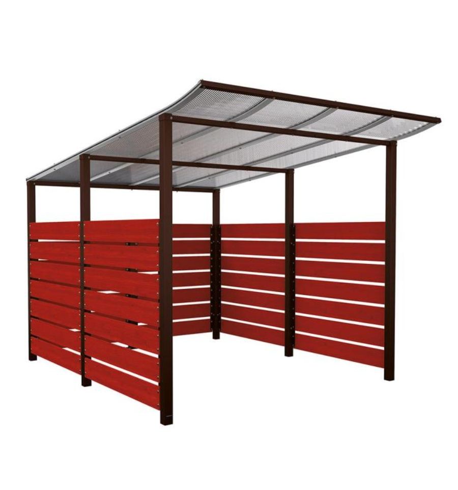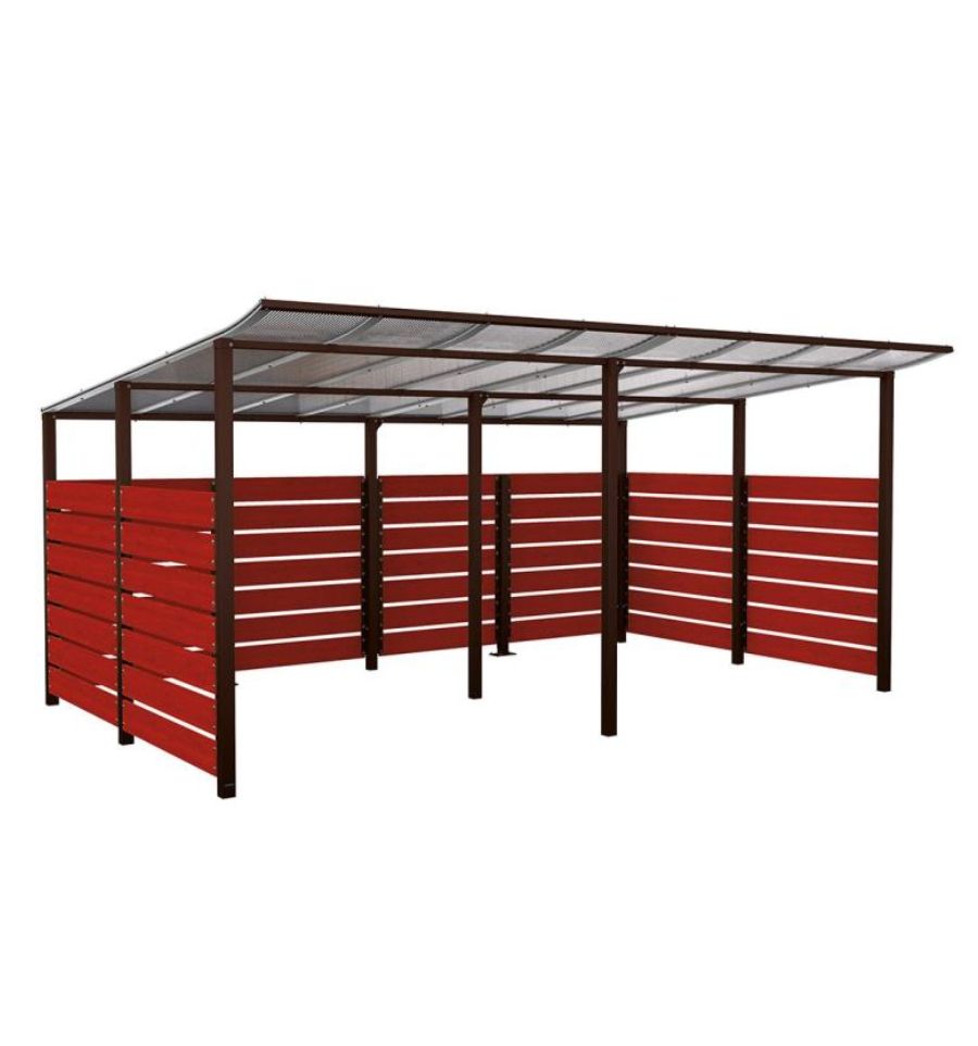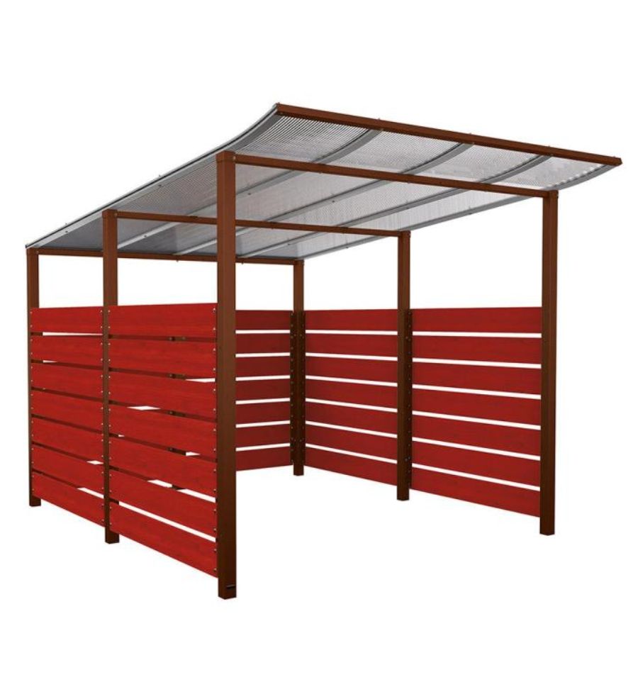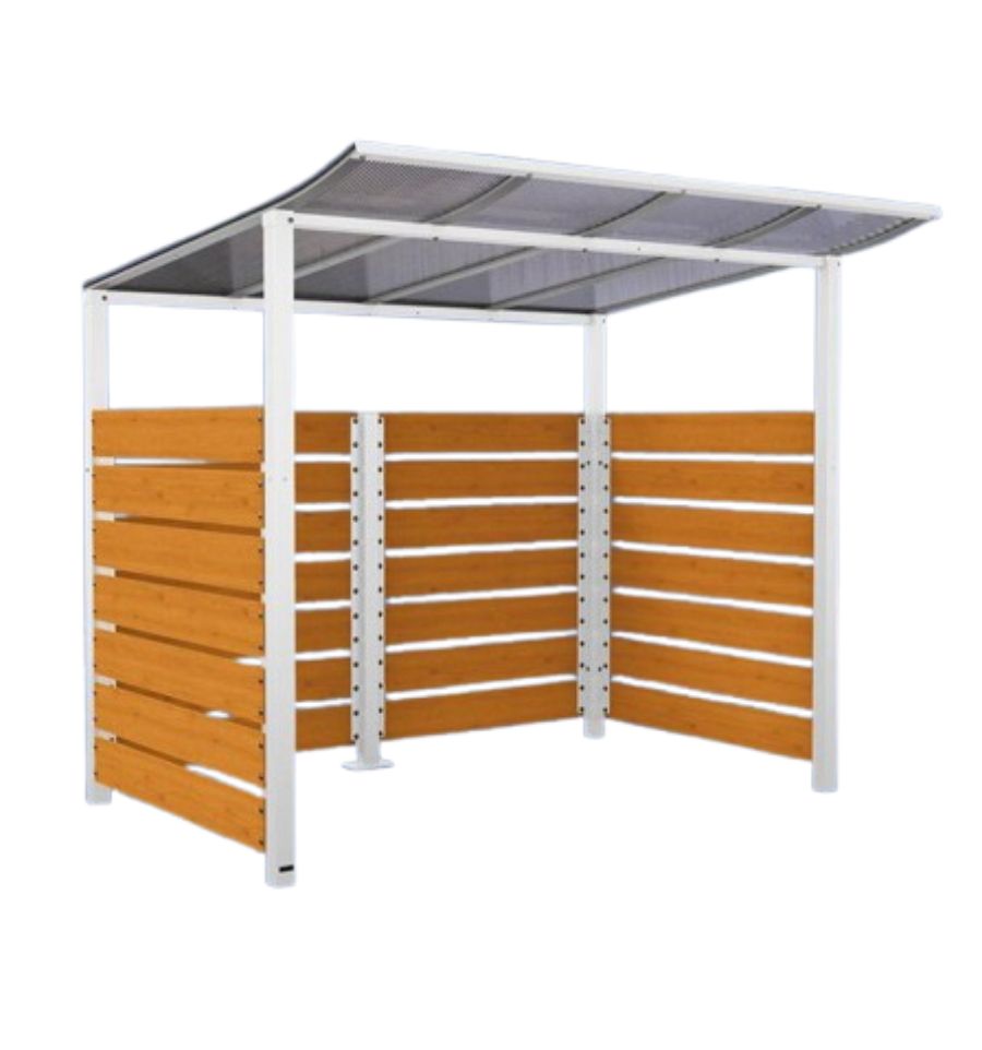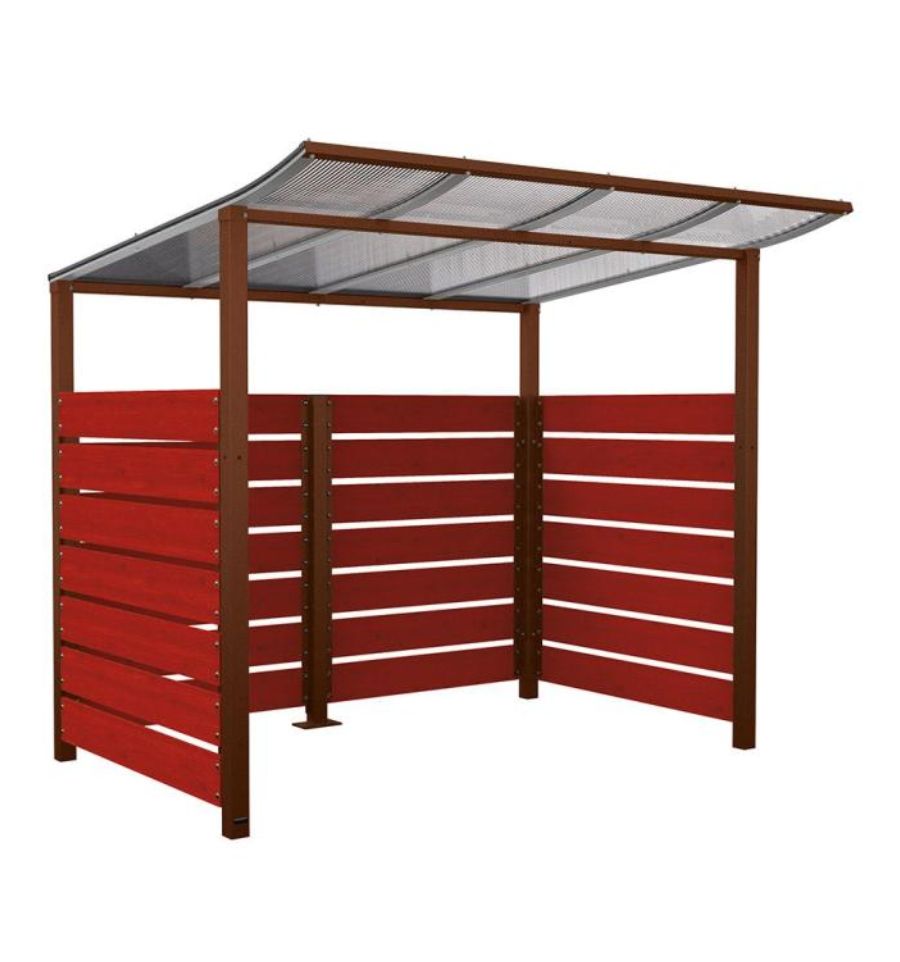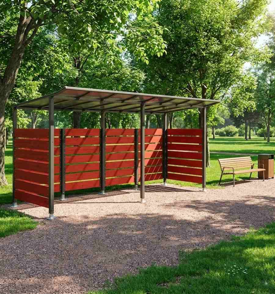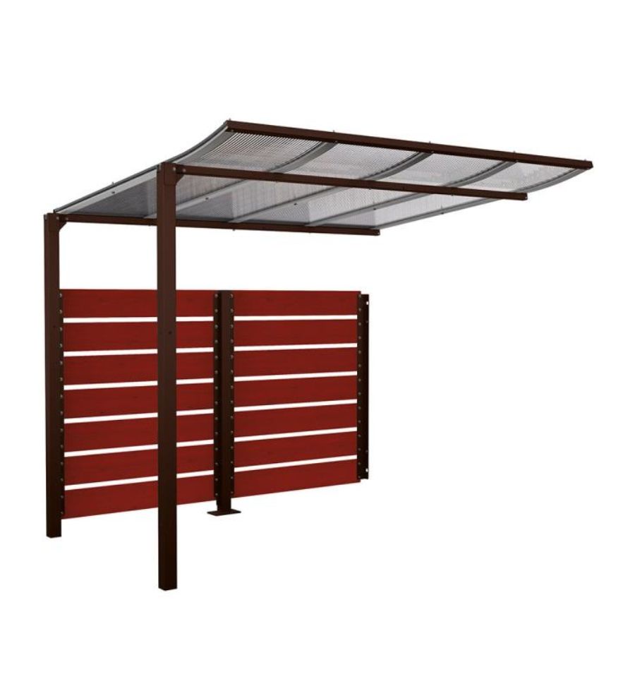 La structure est réalisée avec des poteaux en tube, en acier de 70 × 70 mm. Les bardages de fond et latéraux sont conçus en stratifié compact d'épaisseur 13 mm lui permettant d'être durable, résistant, face à l'usure, l'humidité et à la chaleur.