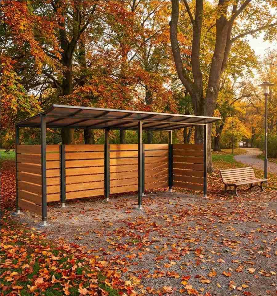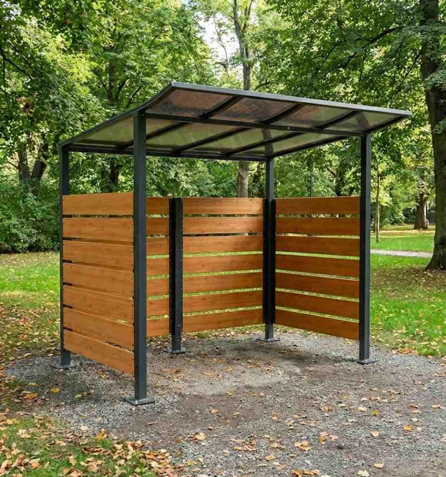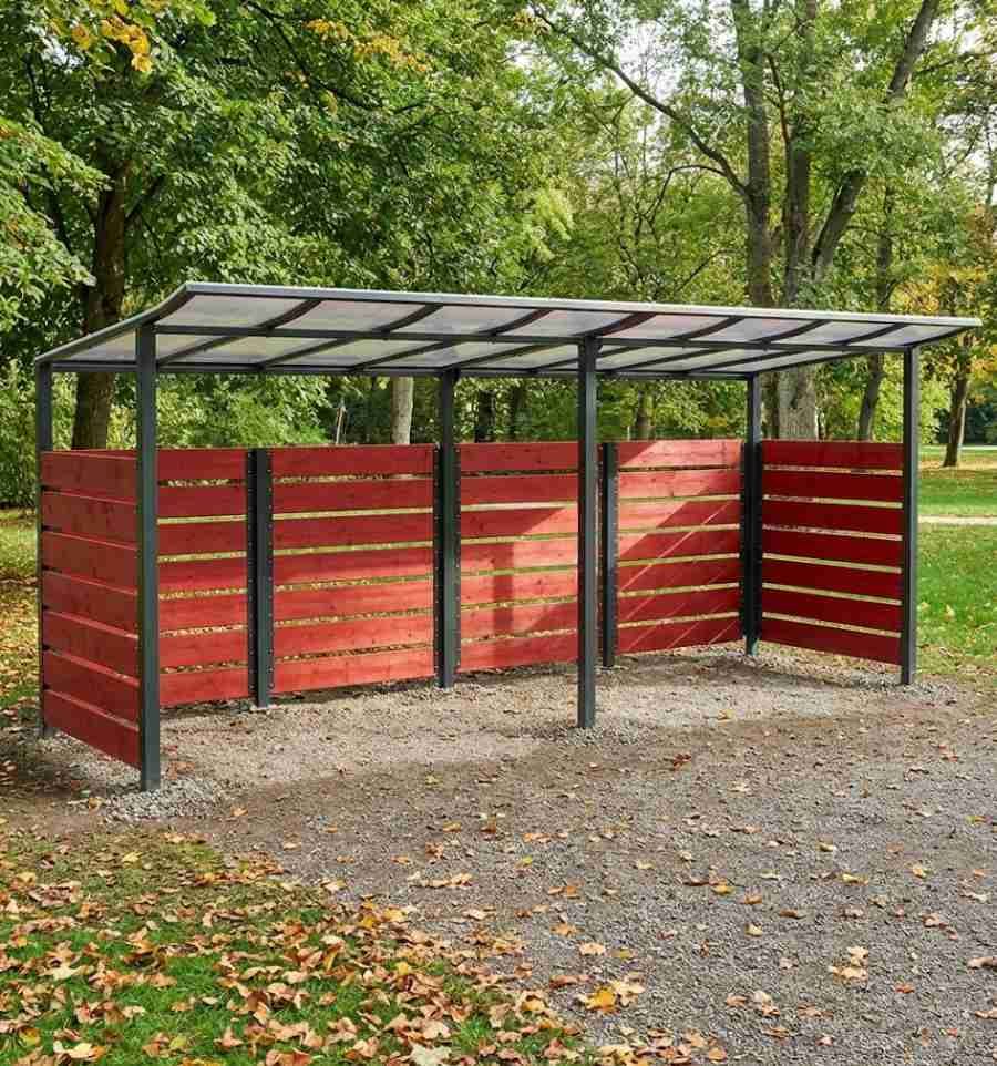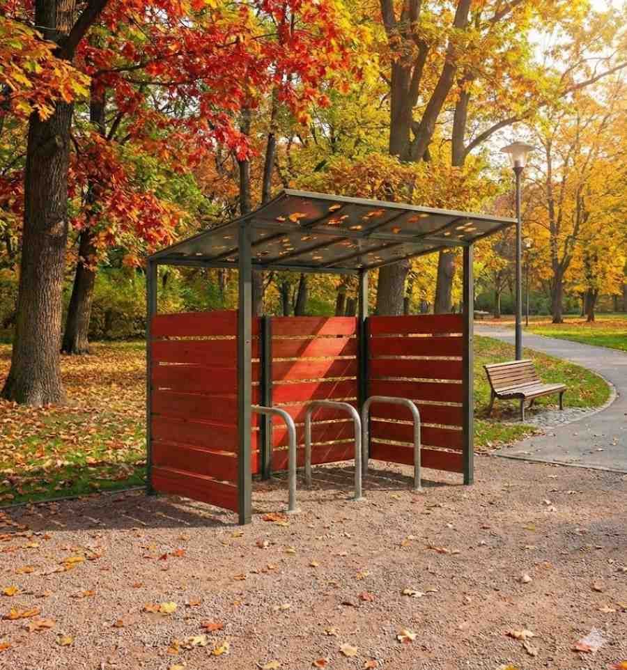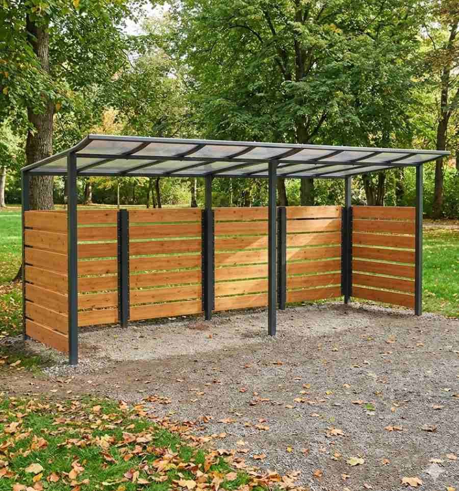 Abri vélo collectivité modulo en stratifié compact effet bois