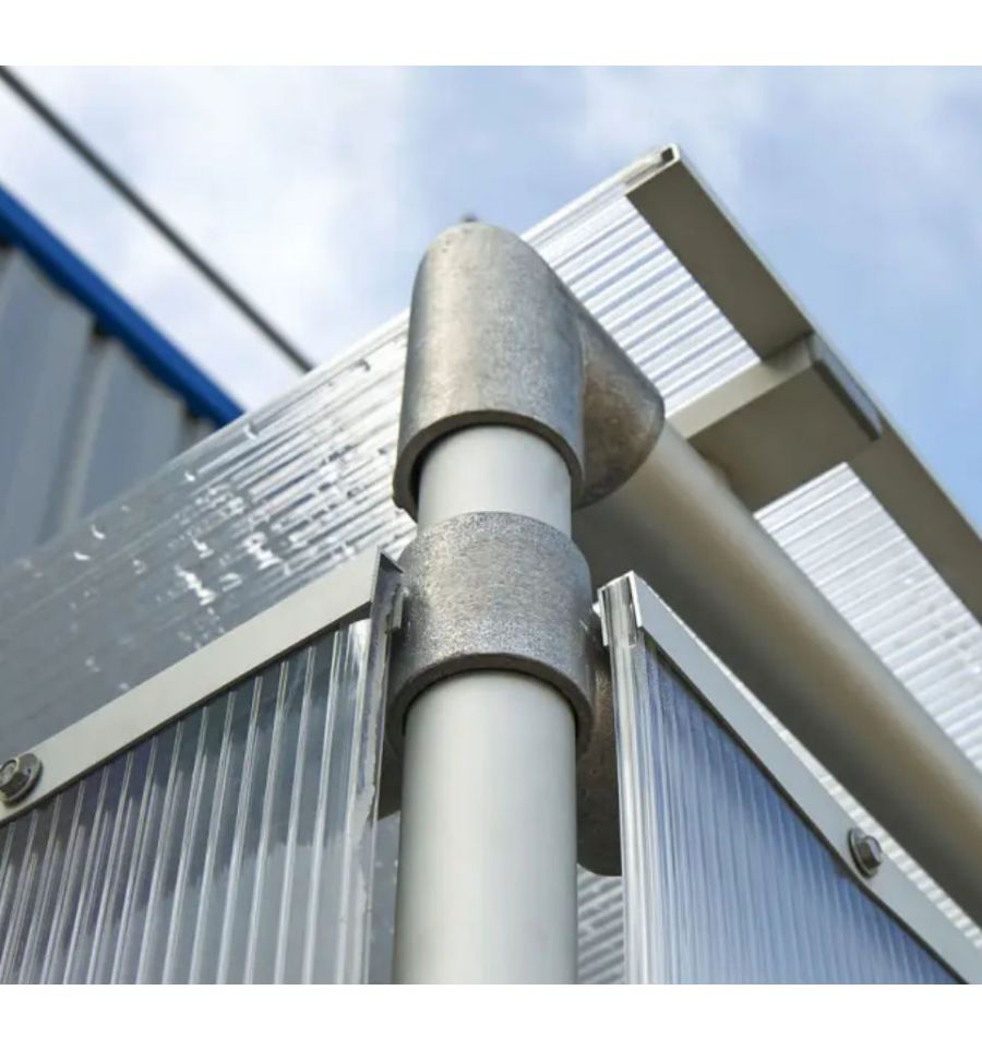 Une fois l'installation réalisée, vous n'aurez pas à craindre de dégradation sur sa structure ou ses bardages. En effet, les bardages sont composés en polycarbonate alvéolaire d'épaisseur 10 mm traité anti-UV. Grâce à ce traitement, le bardage gardera son voile transparent et ne jaunira pas.