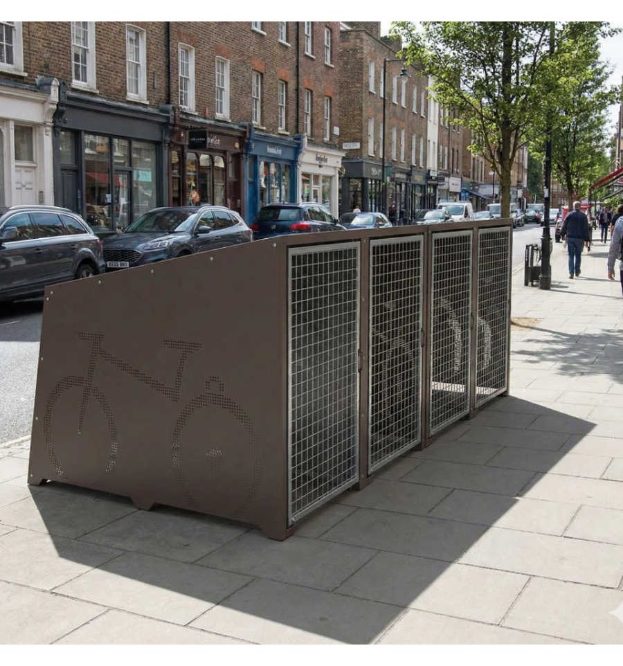 Le box à vélo se pose sur platines, par goujons d'encrage de 9 mm (non fournis). Il s'installe parfaitement en pleine ville, proche des commerces ou d'entreprises accueillant des collaborateurs.