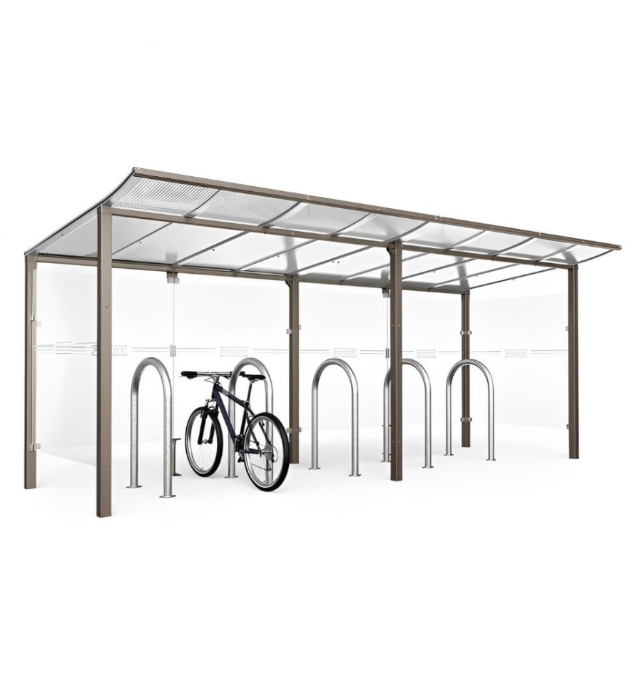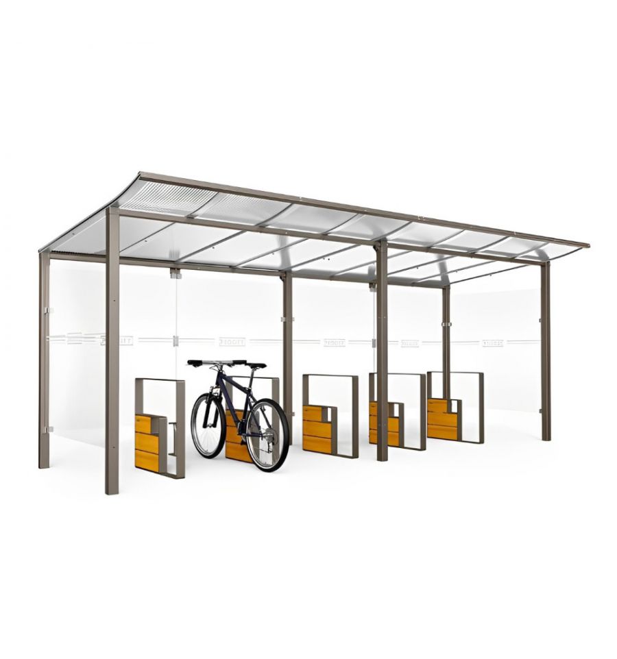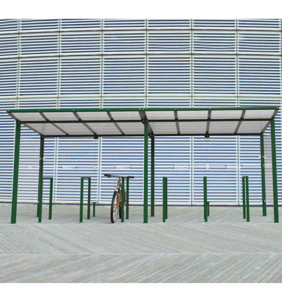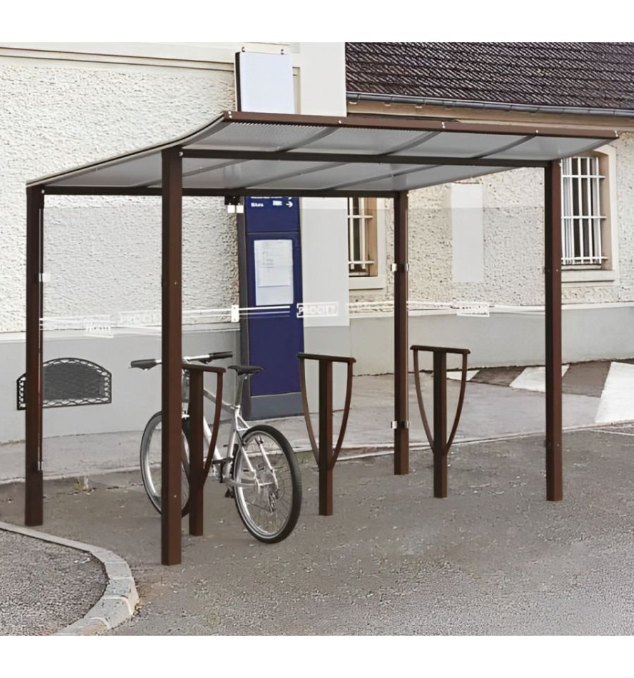 L’abri vélo extérieur protège les vélos contre toutes intempéries dans les lieux publics. Il peut abriter jusqu’à 6 vélos et plus selon le modèle sélectionné. Sa structure est composée de poteaux en acier de 70 x 70 mm.