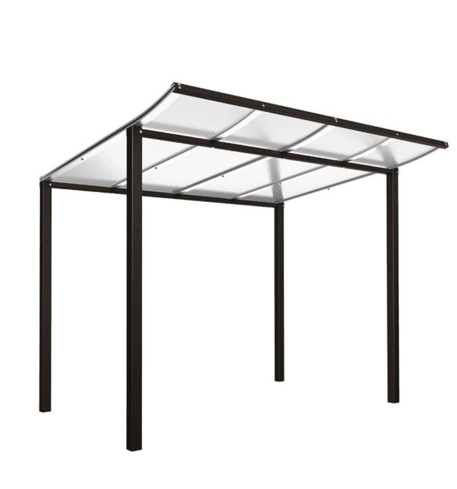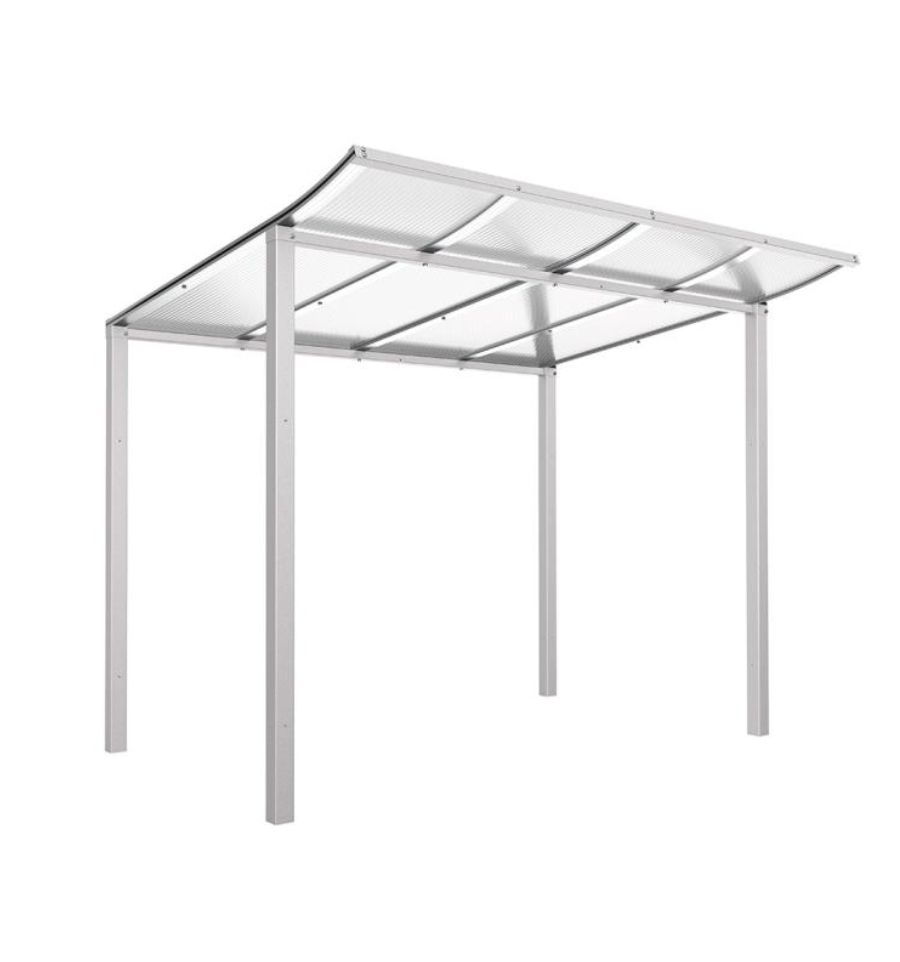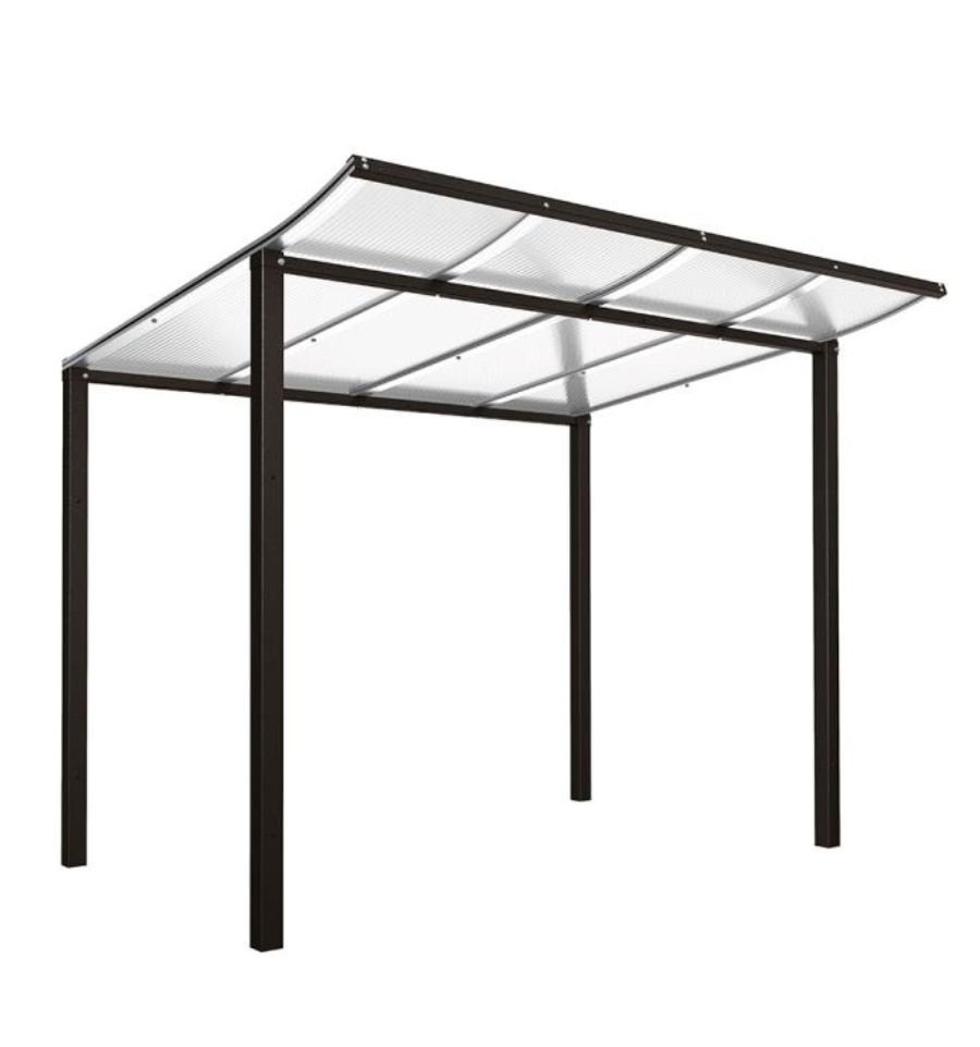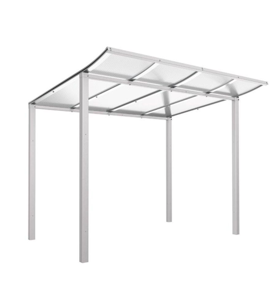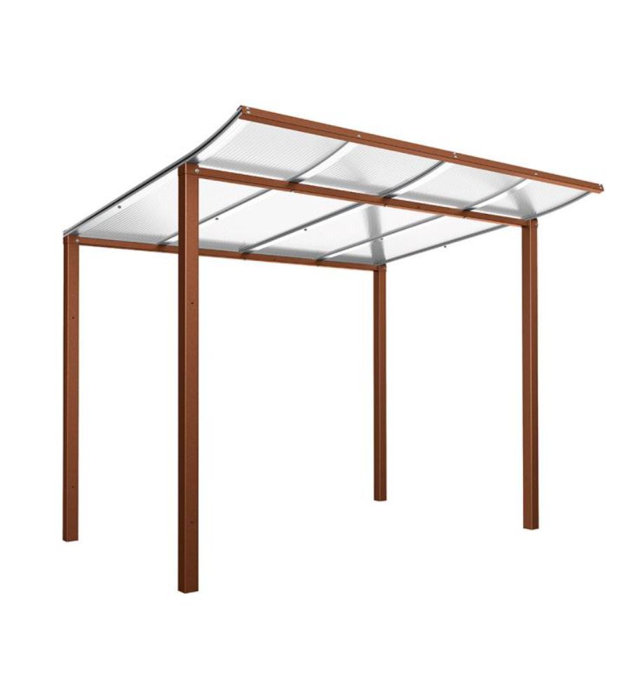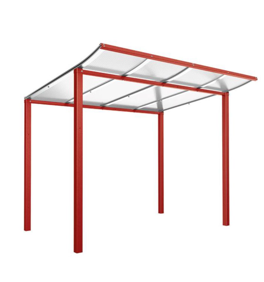 Il est résistant aux intempéries grâce à sa toiture qui possède des panneaux en polycarbonate d’une épaisseur de 10 mm qui laisse la lumière du jour passer et qui protège des rayons UV par son traitement. De plus, ses traverses sont aussi en tubes d’acier 40 x 40 mm.