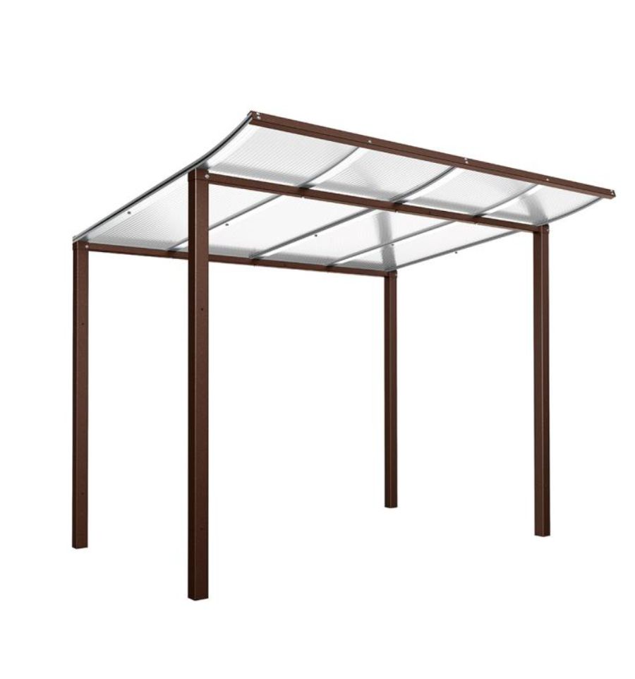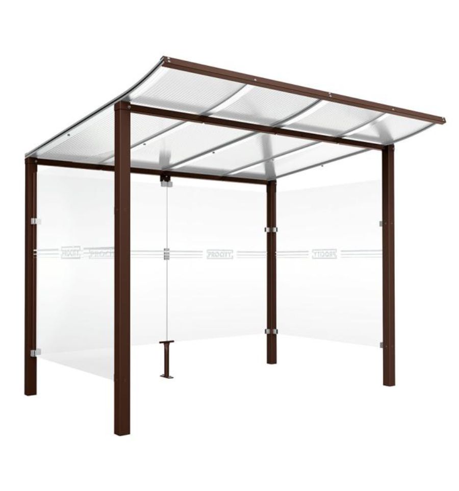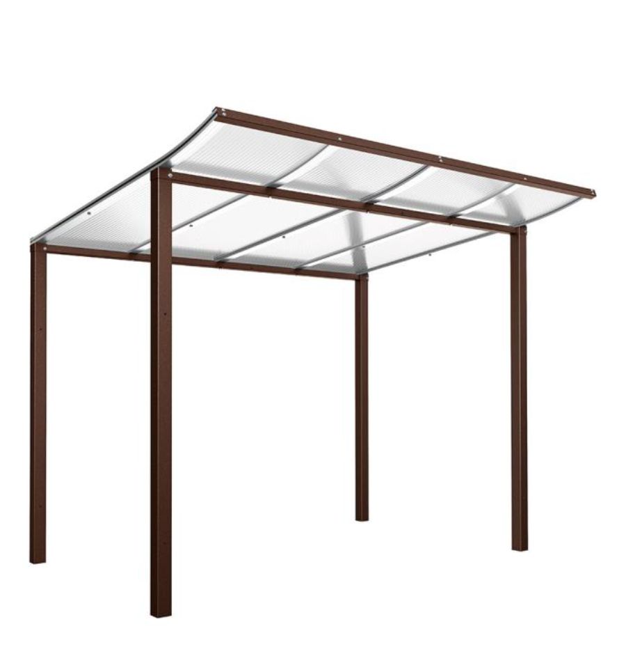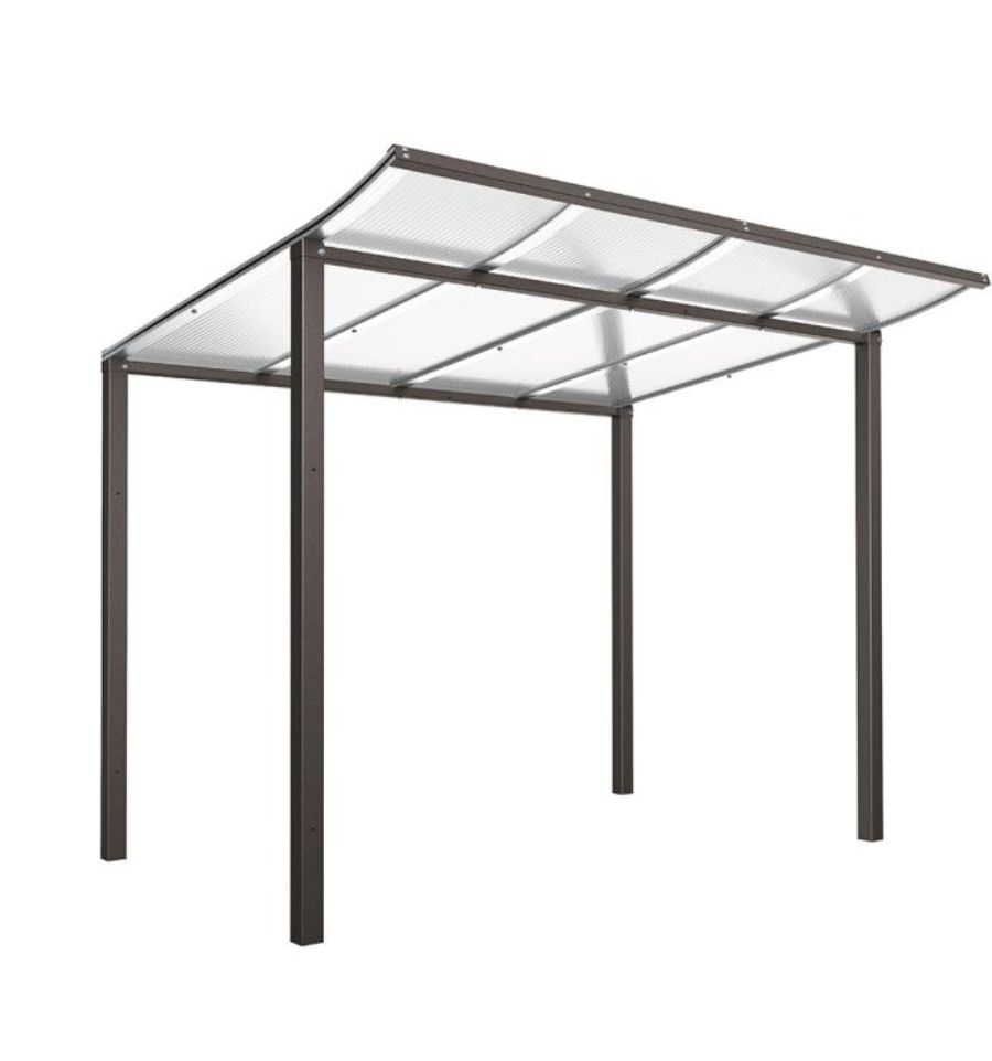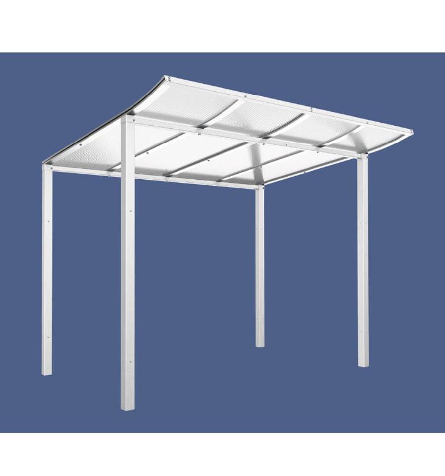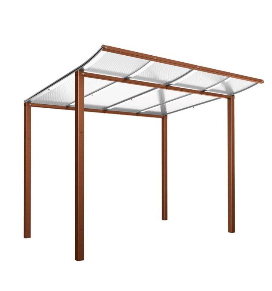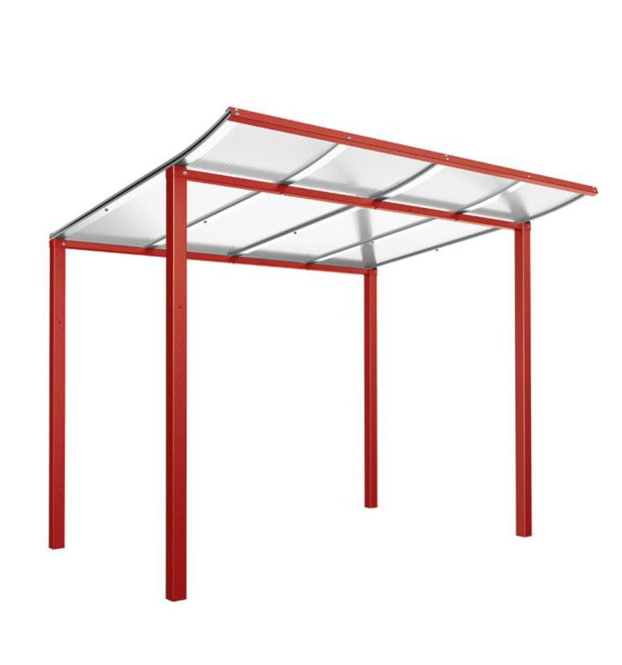 Il est résistant aux intempéries grâce à sa toiture qui possède des panneaux en polycarbonate d’une épaisseur de 10 mm qui laisse la lumière du jour passer et qui protège des rayons UV par son traitement. De plus, ses traverses sont aussi en tubes d’acier 40 x 40 mm.