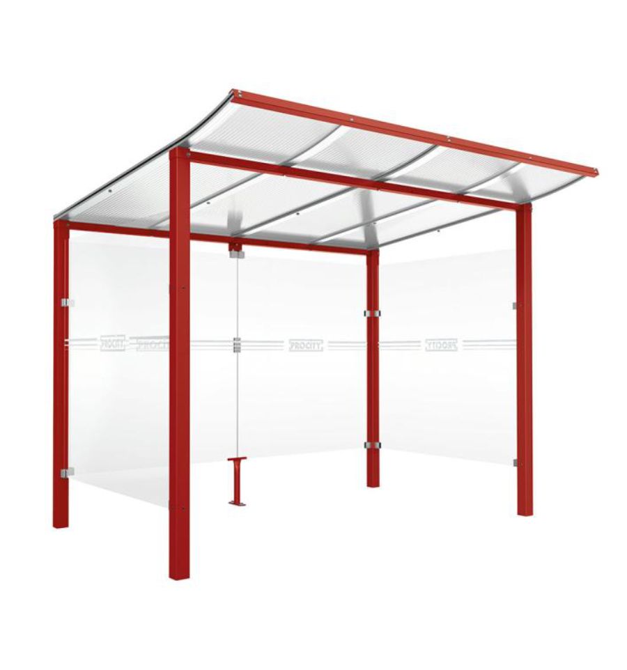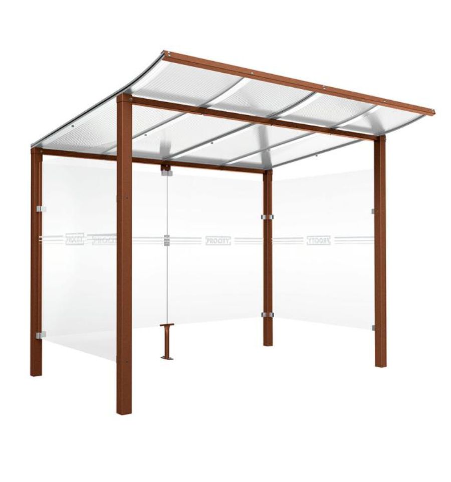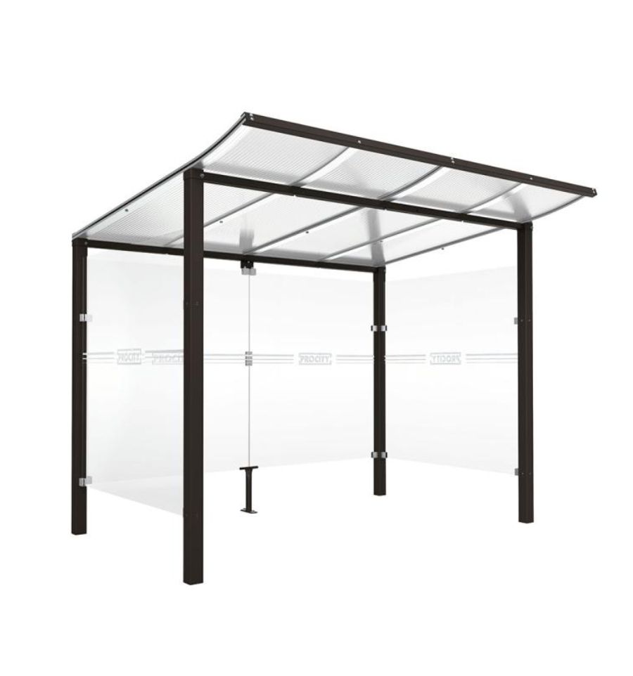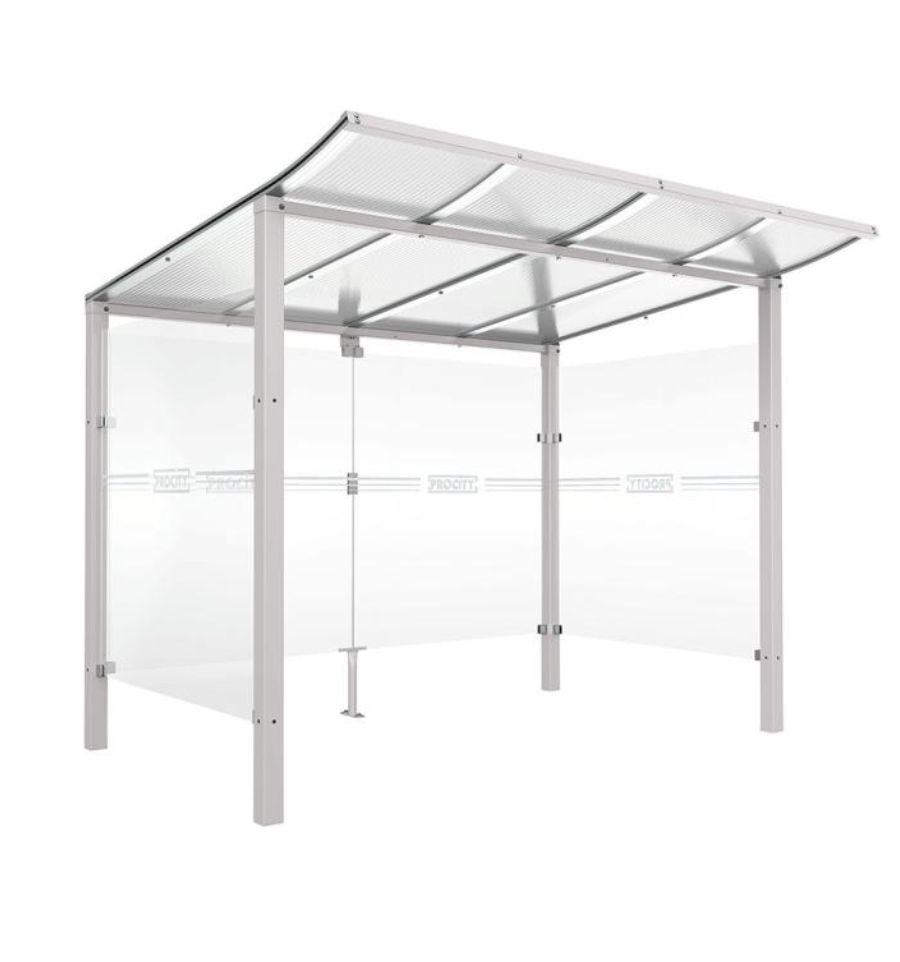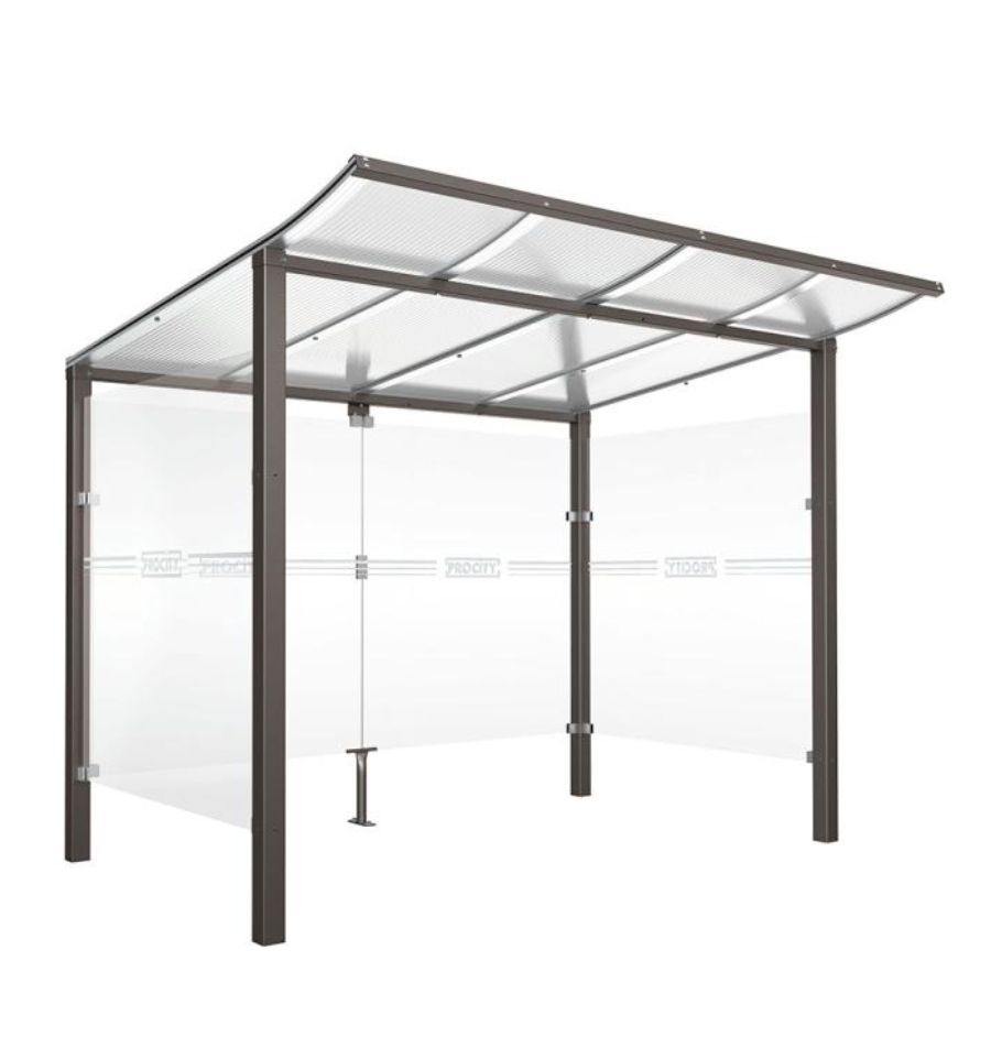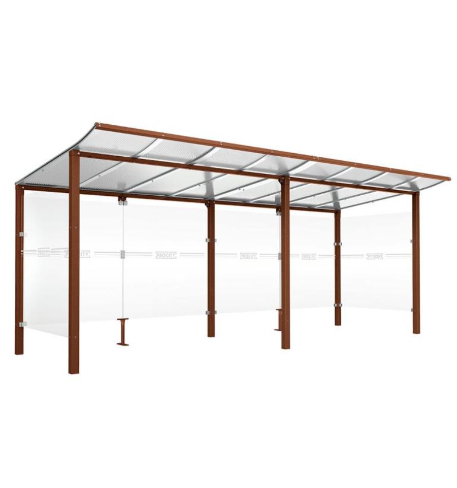 Il est résistant aux intempéries grâce à sa toiture qui possède des panneaux en polycarbonate d’une épaisseur de 10 mm qui laisse la lumière du jour passer et qui protège des rayons UV par son traitement. De plus, ses traverses sont aussi en tubes d’acier 40 x 40 mm.