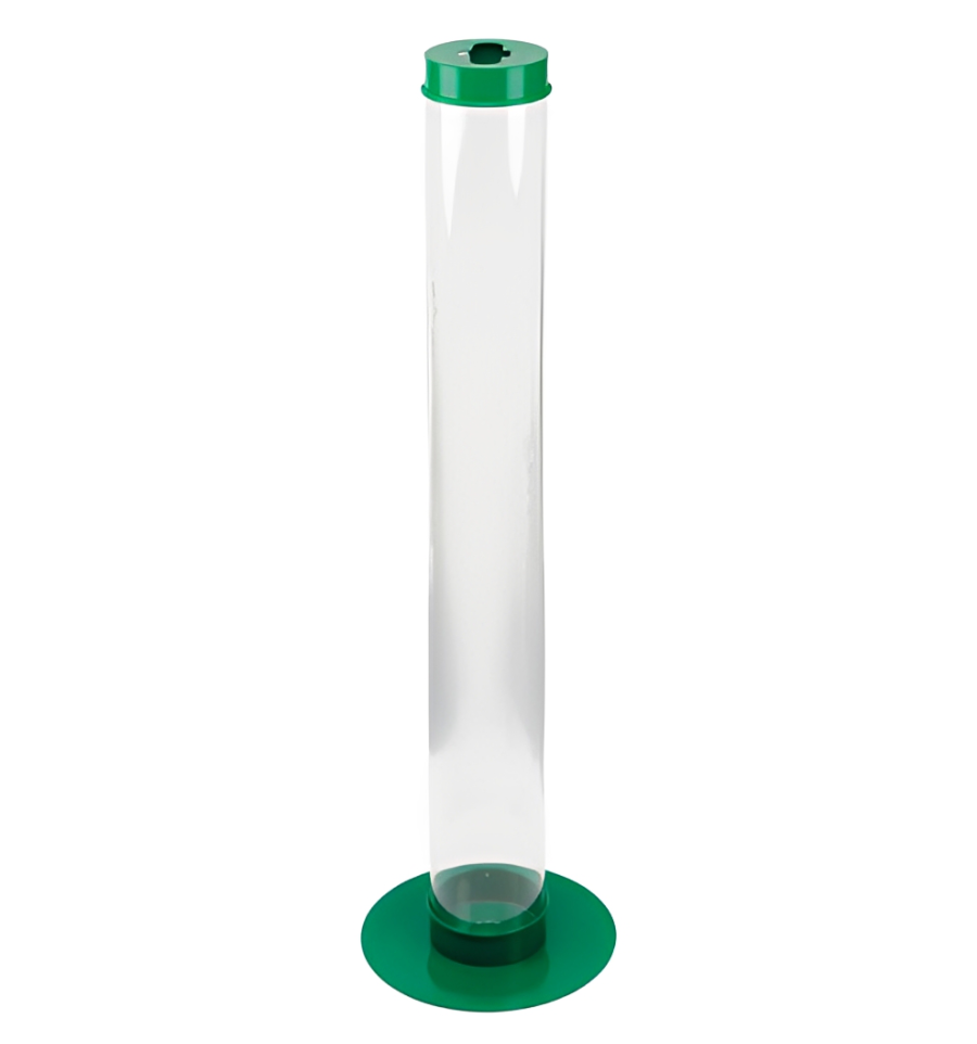 Notre modèle de 10 L possède une base et un couvercle en acier laqué, disponible en vert et en gris (peinture époxy). De plus, son tube est conçu en polycarbonate transparent.