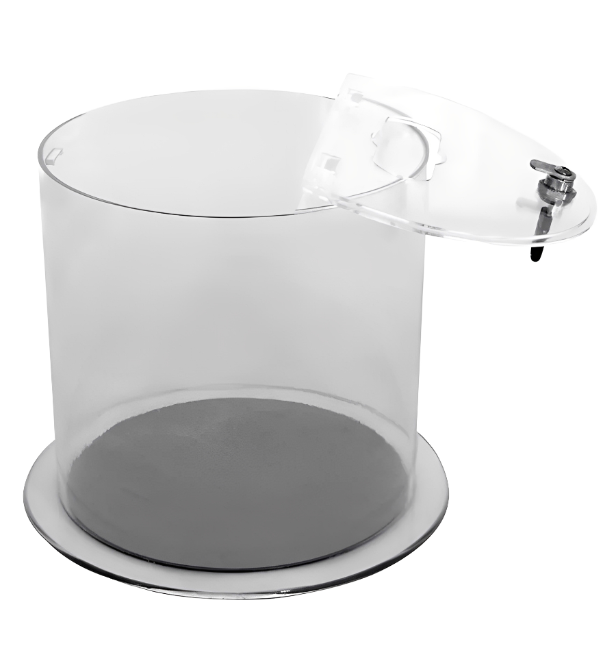 Les modèles de 12 et 37 L sont conçus en PMAA (plexiglas) recyclable et possèdent un système de verrouillage par clé. Nos modèles de 10 L sont fabriqués en acier et en polycarbonate.