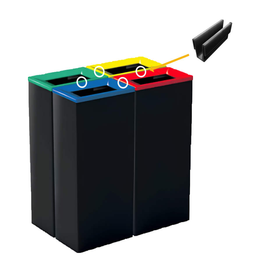 Il permet de relier les poubelles entre elles, empêchant qu'elles ne bougent lors de l'utilisation ou du nettoyage.