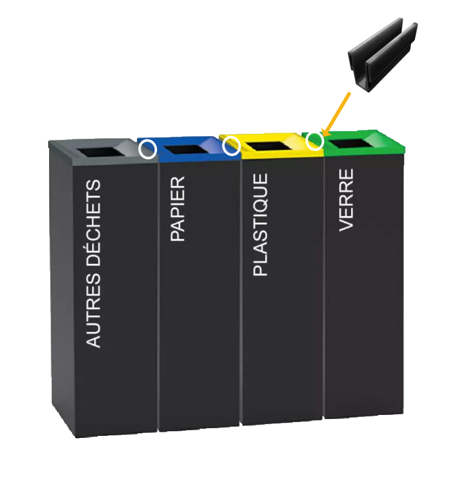 Il permet de créer une station de tri sélectif et garantit un alignement parfait des corbeilles.