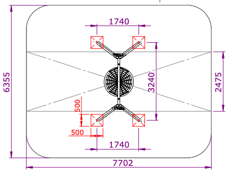 Zone de sécurité (surface d'impact) : 7702 x 6355 mm (soit environ 48,8 m2)