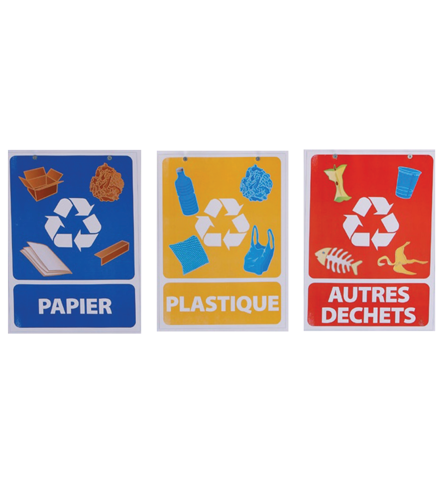 Nous vous offrons la possibilité d'ajouter un lot de 3 panneaux de tri sélectif pour optimiser la signalétique des flux.
