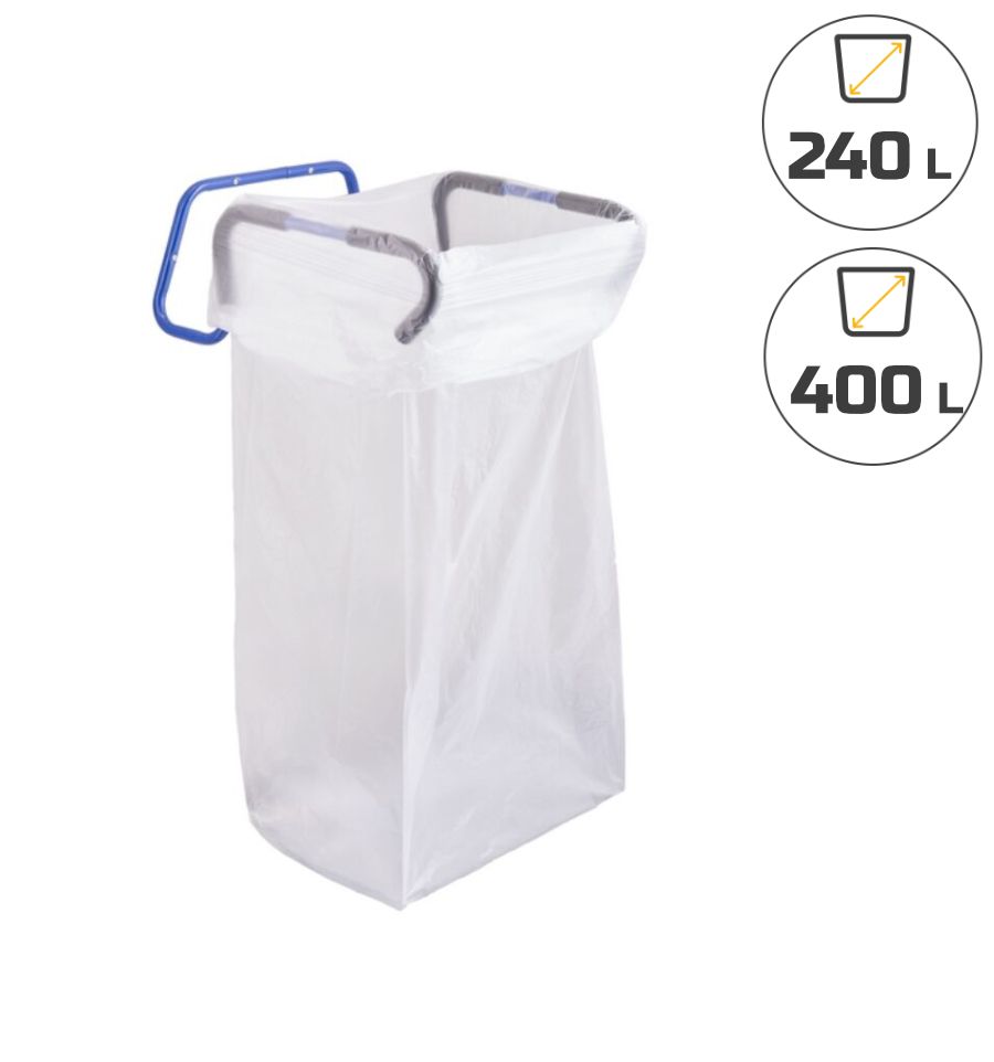 Fabriqué en acier, un matériau robuste et durable, il peut accueillir des sacs d'une contenance de 240 ou 400 L. Son installation et son entretien sont très facile.