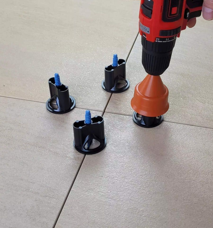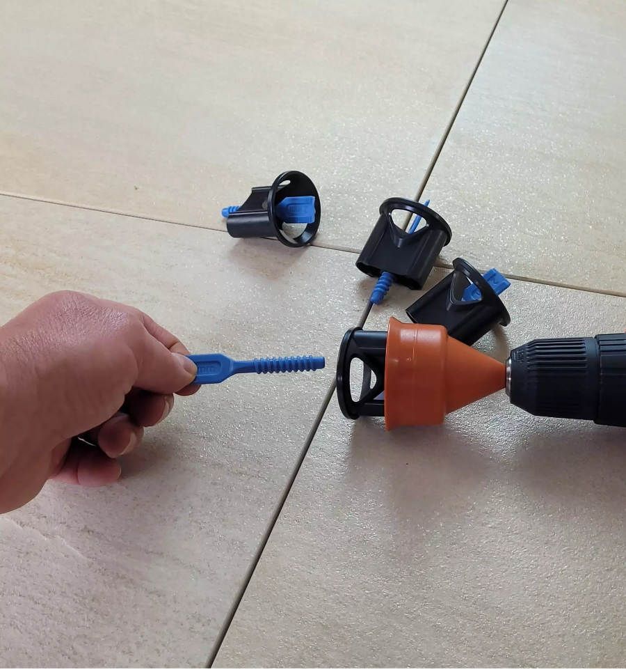 L'utilisation de nos têtes à visser est très simple et rapide tout en permettant un nivellement des carreaux sans défaut. Nous vous décrivons ci-dessous les étapes de pose des croisillons avec les cadrans.