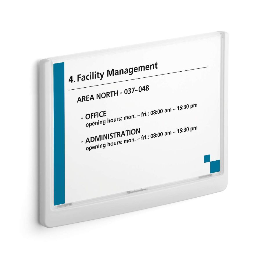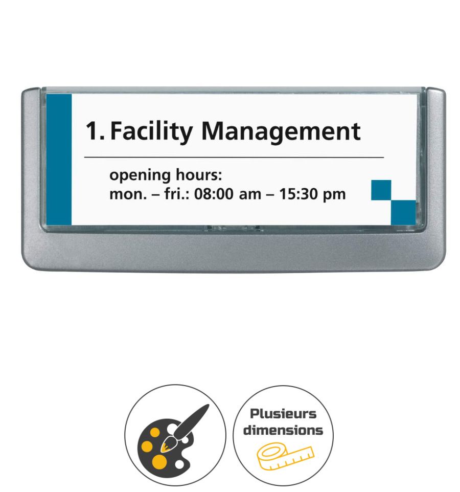 L'affichage signalétique est 100% modifiable. Grâce à l'application duraprint, vous pouvez personnaliser vos inserts bristols rapidement et gratuitement.