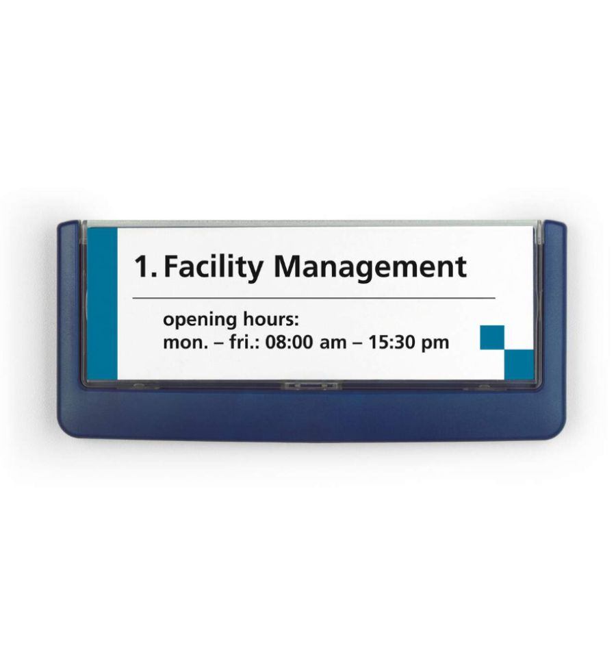 La plaque de porte click sign est conçue pour la signalétique d'intérieur. Disponible en plusieurs formats et coloris, elle s'adapte parfaitement dans tous les lieux recevant du public. Elle peut se fixer par vis ou bien par pastilles adhésives. L'insert présent à l'intérieur se change rapidement et facilement.