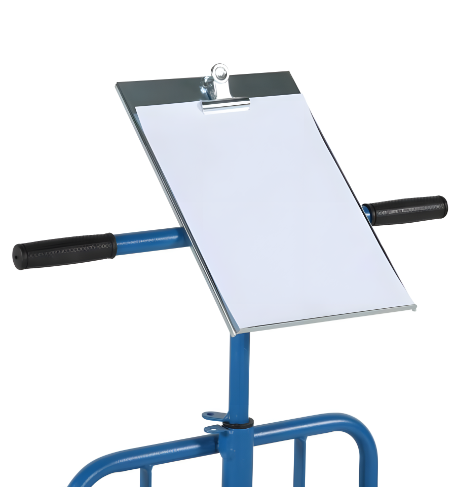 En deuxième option, nous proposons le porte-documents au format A4. Positionné sur le guidon, il vous aide à mieux suivre votre picking ou vos opérations logistiques. Vous gardez les mains libres pour conduire et transporter des objets.