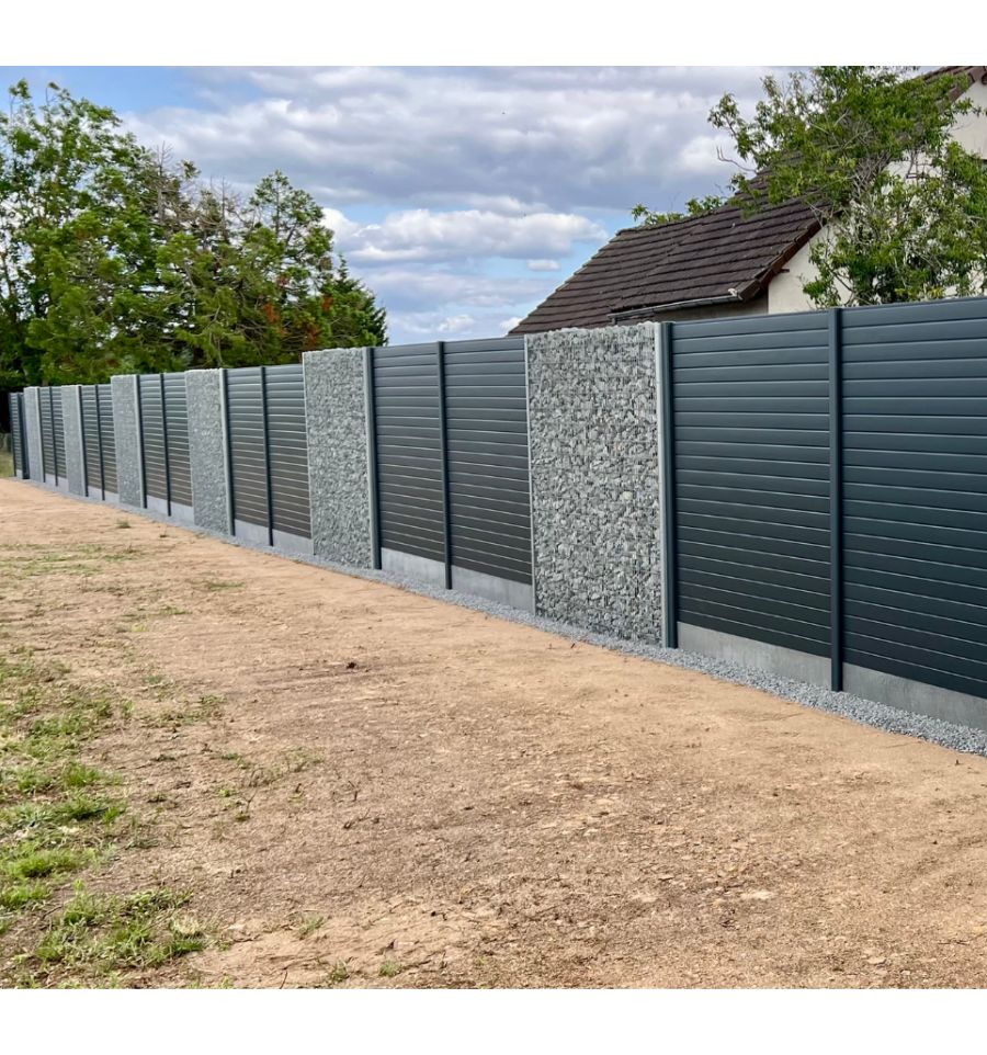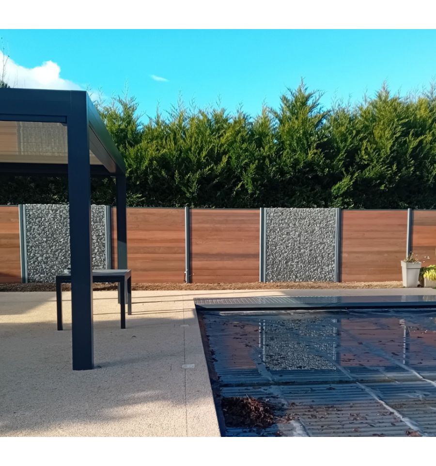 Notre clôture gabion permet de décorer et de structurer vos espaces extérieurs. La solidité de la pierre, (vendue séparément) combinée au design de l'aluminium vous permettra de concevoir des clôtures, des murets ou des brise-vues ayant une finition unique.