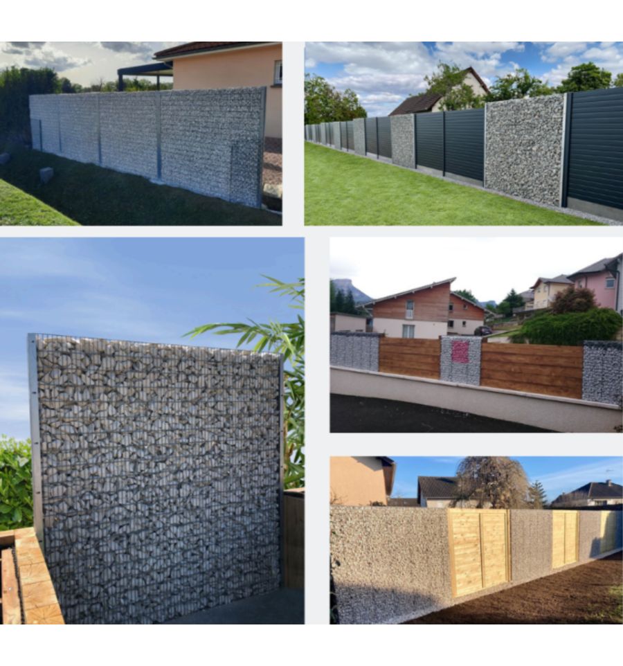 Veuillez noter, les gabions sont vides et non remplis. Vous pourrez retrouver nos cailloux pour gabion, indispensables pour terminer vos gabions pour clôture. À vous de sceller/fixer les poteaux au sol.