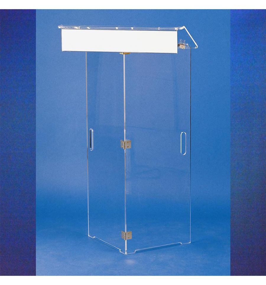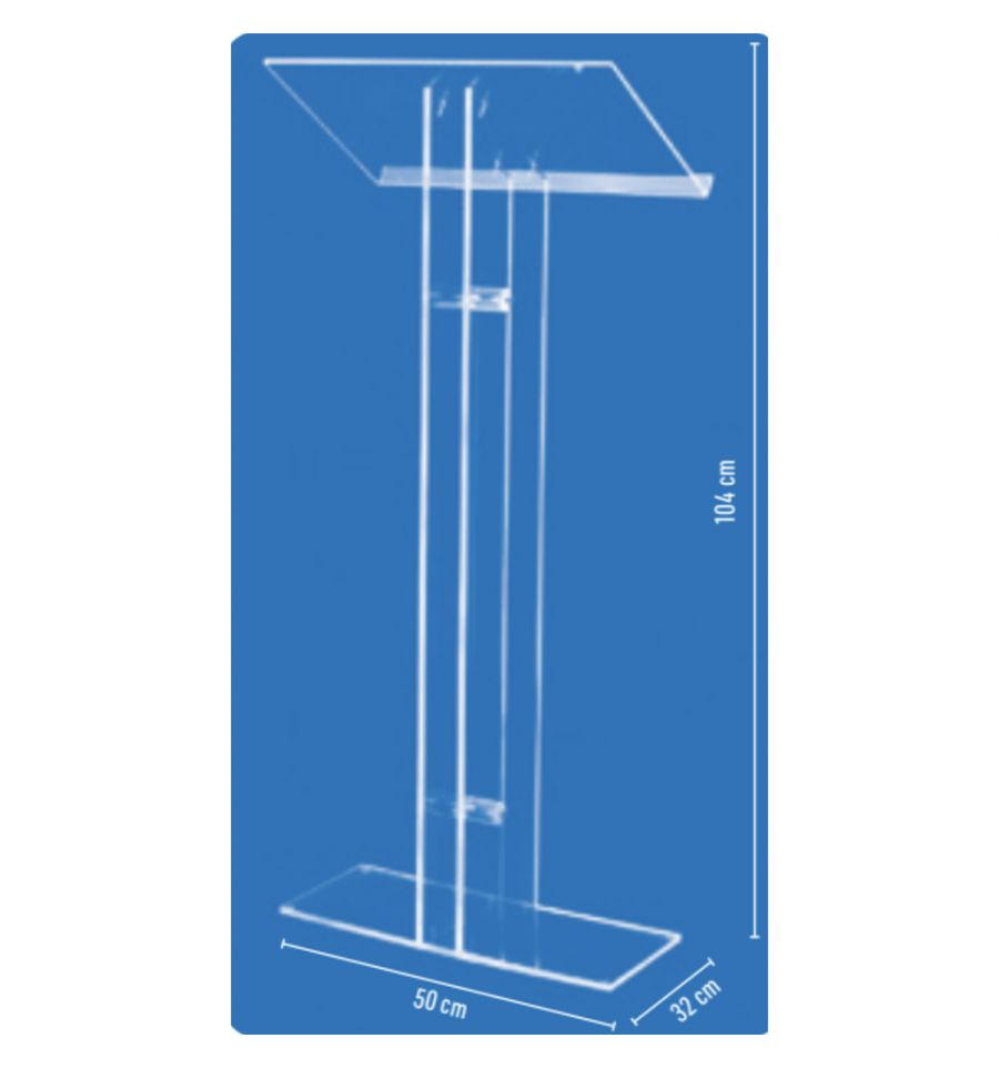 Le pupitre luxe cristal est un pupitre haut de gamme en plexiglas PMMA, épaisseur : 15 mm. Il dispose d'un panneau pour poser un logo ou autre message.
