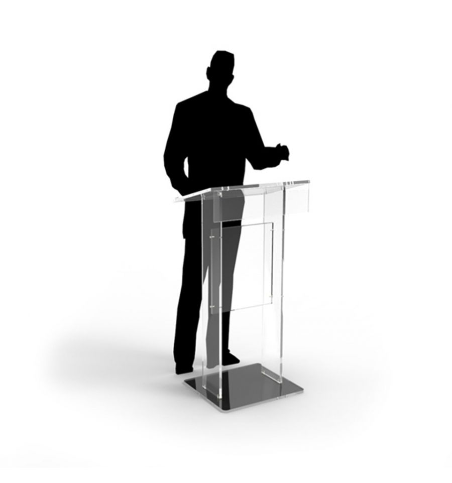 Notre pupitre de conférence en plexiglas permet à l'orateur d'être dans la posture principale pendant son discours. Le côté transparent du plexiglas permet d'établir une certaine proximité avec le public.