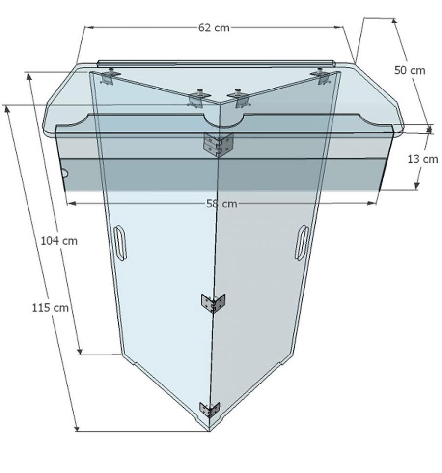 Tablette : plexiglass transparent inclinée / 32 x 47 cm / épaisseur : 4 mm